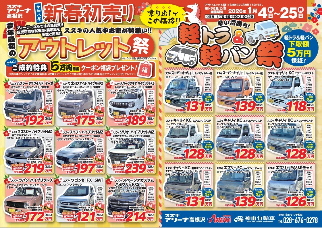 アウトレット祭・軽トラ&軽バン祭は1月25日(日)までのロングラン