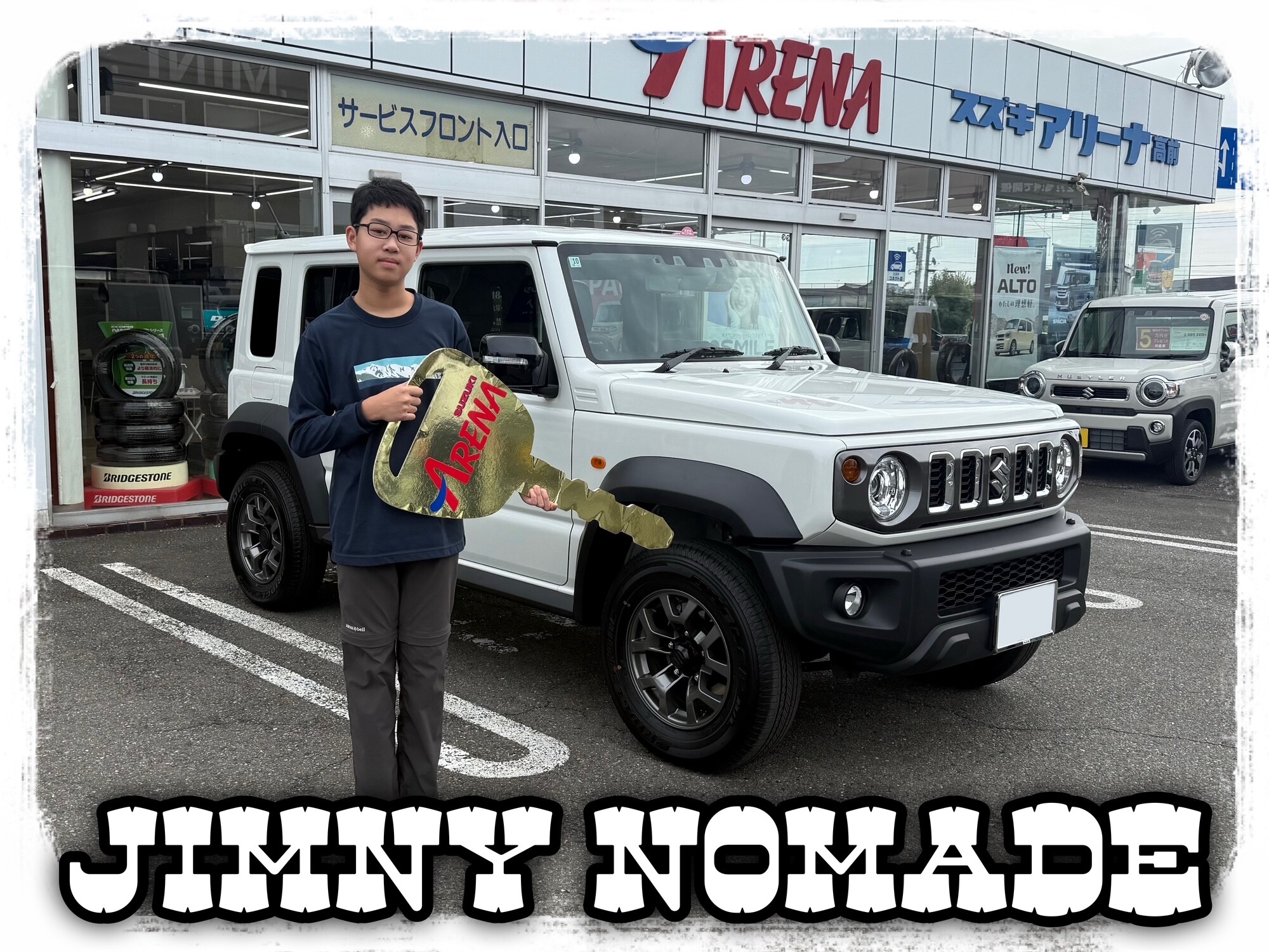 納車ギャラリー 2025.10.16 ☆Y様 ご納車おめでとうございます☆ 愛車 ジムニー ノマド お客様 Y様 グレード FC ボディーカラー ZVR ピュアホワイトパール ☺︎こんにちは☺︎ スズキアリーナ高前営業の将哉です。 この度Y様にジムニーノマドご納車させていただきました! ご納車おめでとうございます。 これからのY様のカーライフをスタッフ一同サポートさせて頂きますので、 末永いお付き合いよろしくお願い致します。 この度はホームページのご協力誠にありがとうございました。