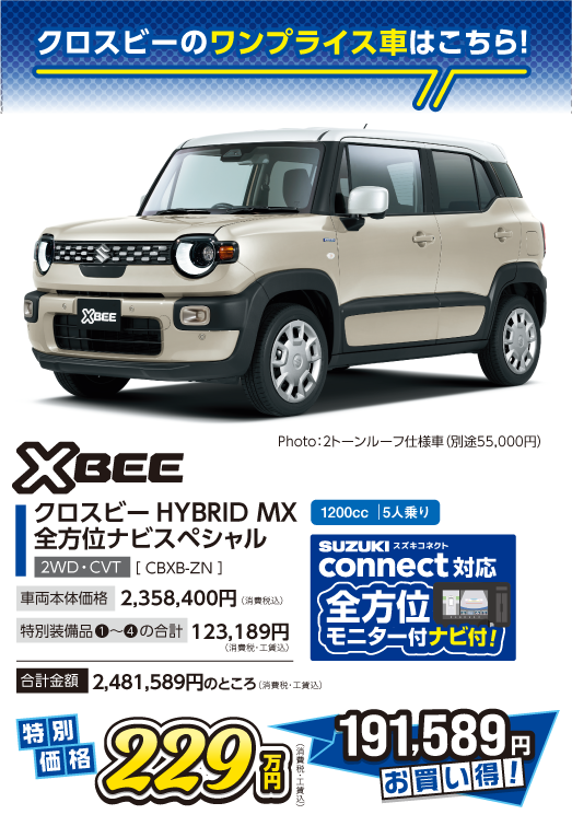 ワンプライス車の価格は、オプションプレゼント値引分が含まれています。