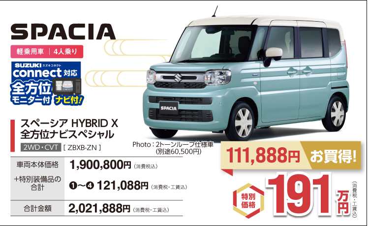 ※ワンプライス車は、純正オプションプレゼント・かえるプラン対象外です