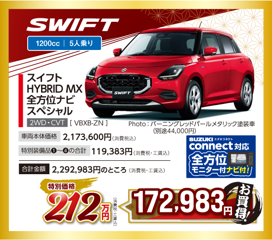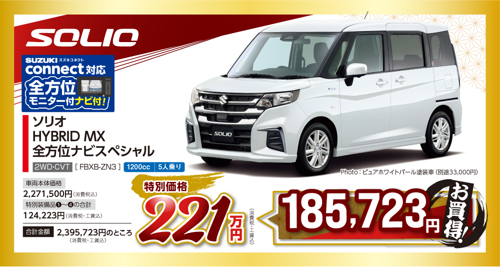 ワンプライス車の価格は、スズキ純正オプションプレゼント値引分が含まれています。