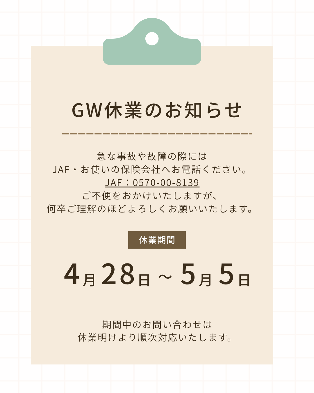 GW休暇にご案内