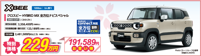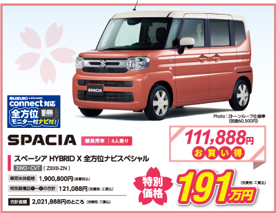 *価格表記記載のフロアマット・バイザー等の標準付属品、メーカーオプション、ジムニー、ジムニーシエラ、ジムニーノマド、フロンクスは対象外です。