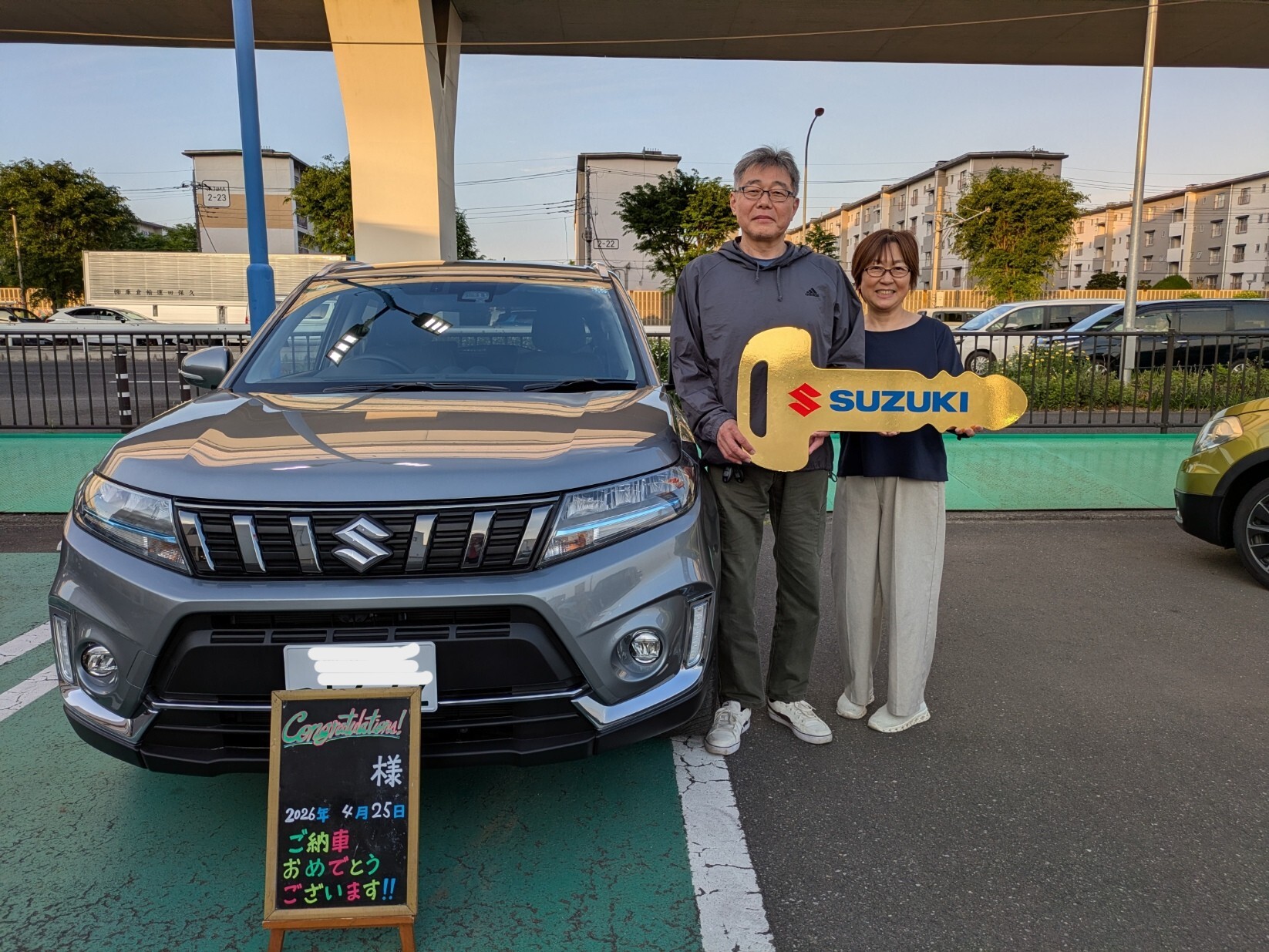 納車ギャラリー 2026.04.25 本日は納車おめでとうございます。 愛車 エスクード お客様 K様 グレード エスクード1.5 ボディーカラー ギャラクテックグレーメタリック 本日はエスクードを納車させていただきました。 商談当日はお車を気に入ってもらい即決ありがとうございました。 メンテナンスパックもご加入いただきましたので定期的なご来店心よりお待ちしております。