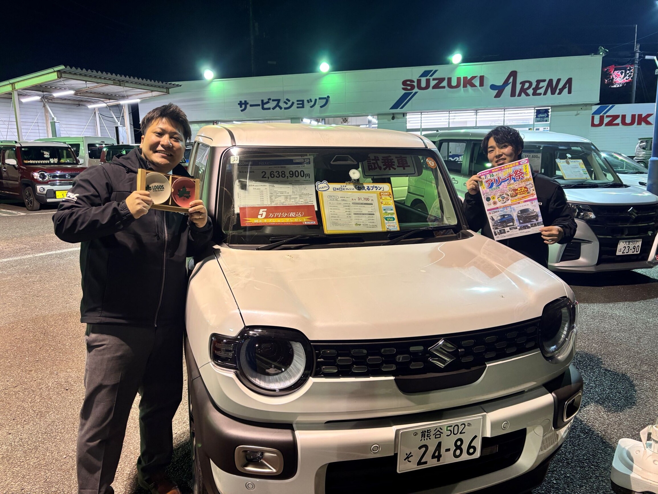 新型クロスビーのご試乗車や、ハスラー・スペーシアの展示車、他にもお車たくさんご用意しております