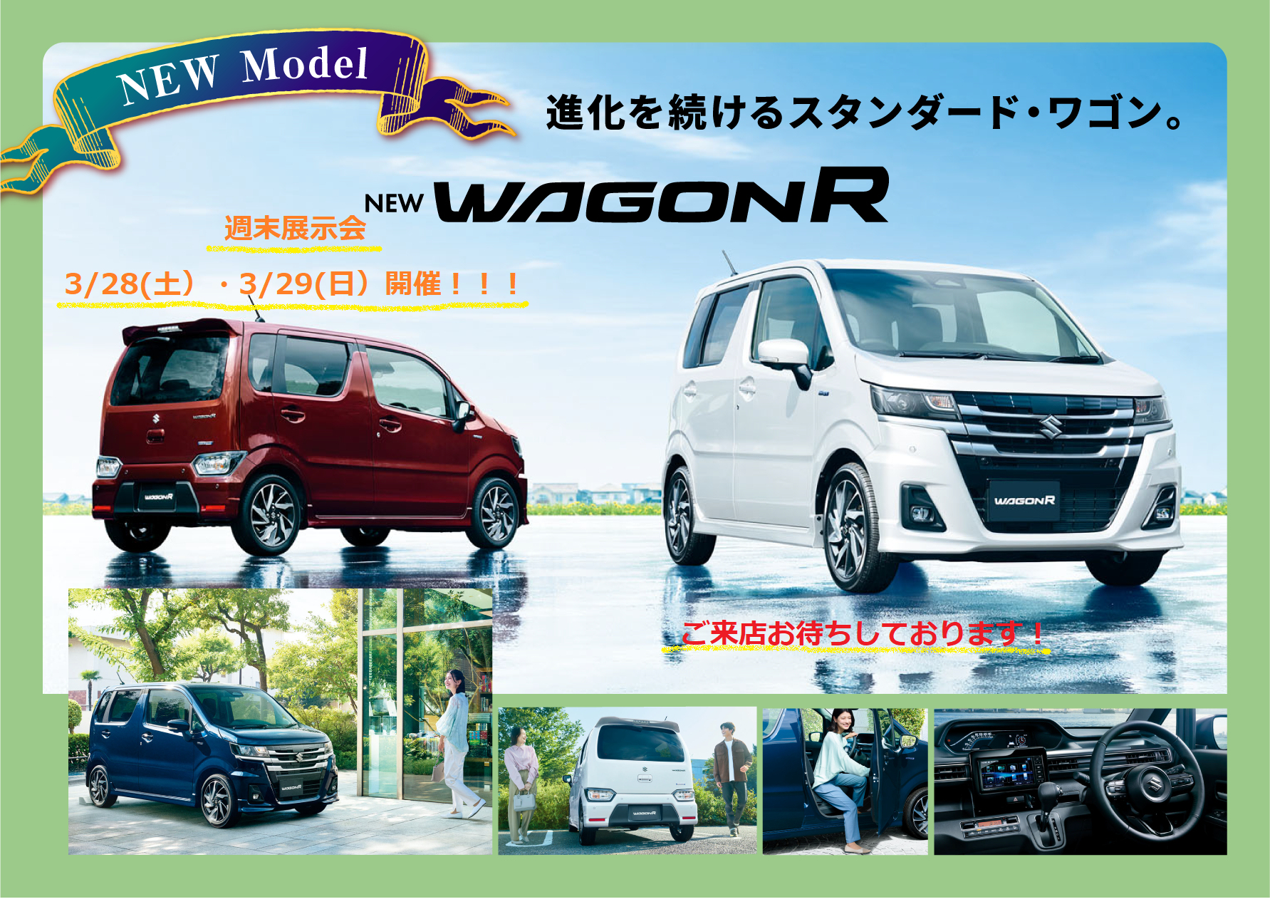 イベントデー 2026.03.26 ☆2025年度最後の週末展示会☆ こんにちは! 本日は週末の展示会のお知らせです 3月28日・29日は 2025年度最後の展示会となります ソリオ・クロスビー・スペーシアの かえるプラン 特別金利2.9% ご案内ができるのは 3月30日まで この機会をお見逃しなく 皆様のご来店心よりお待ちしております。