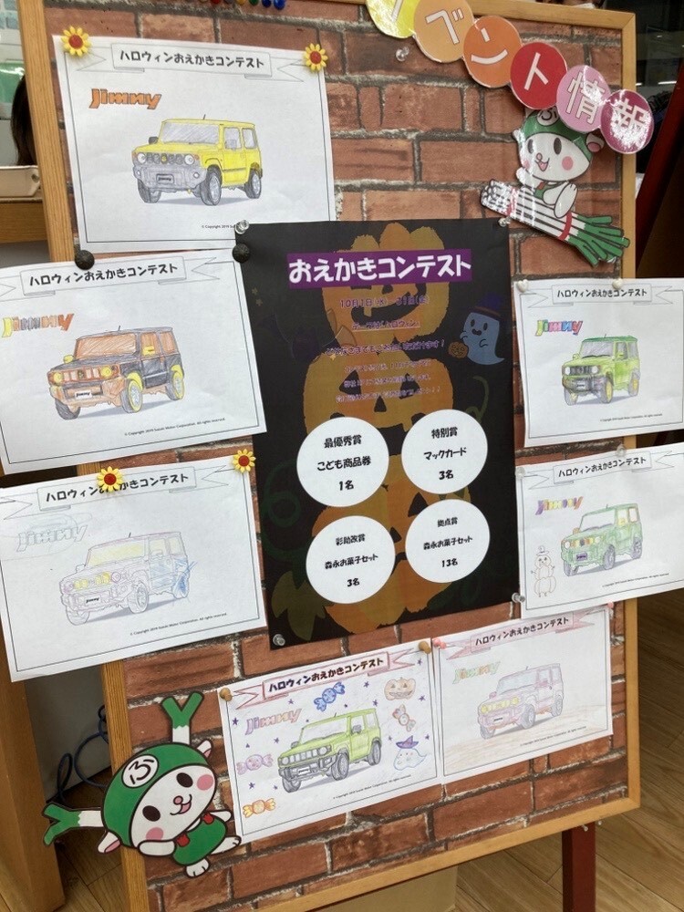 イベント/キャンペーン 2025.10.16 ハロウィン塗り絵コンテスト開催中です! こんにちは!スズキアリーナ深谷店です! ただいま、 ハロウィンおえかきコンテスト を開催中! ご来場いただいたお子様に、 ジムニーの塗り絵とハロウィンイラストを描いていただくと お菓子詰め合わせと色鉛筆をプレゼント コンテスト形式なので、入賞すれば豪華プレゼントも、、、? ぜひ皆さま、ご参加お待ちしております