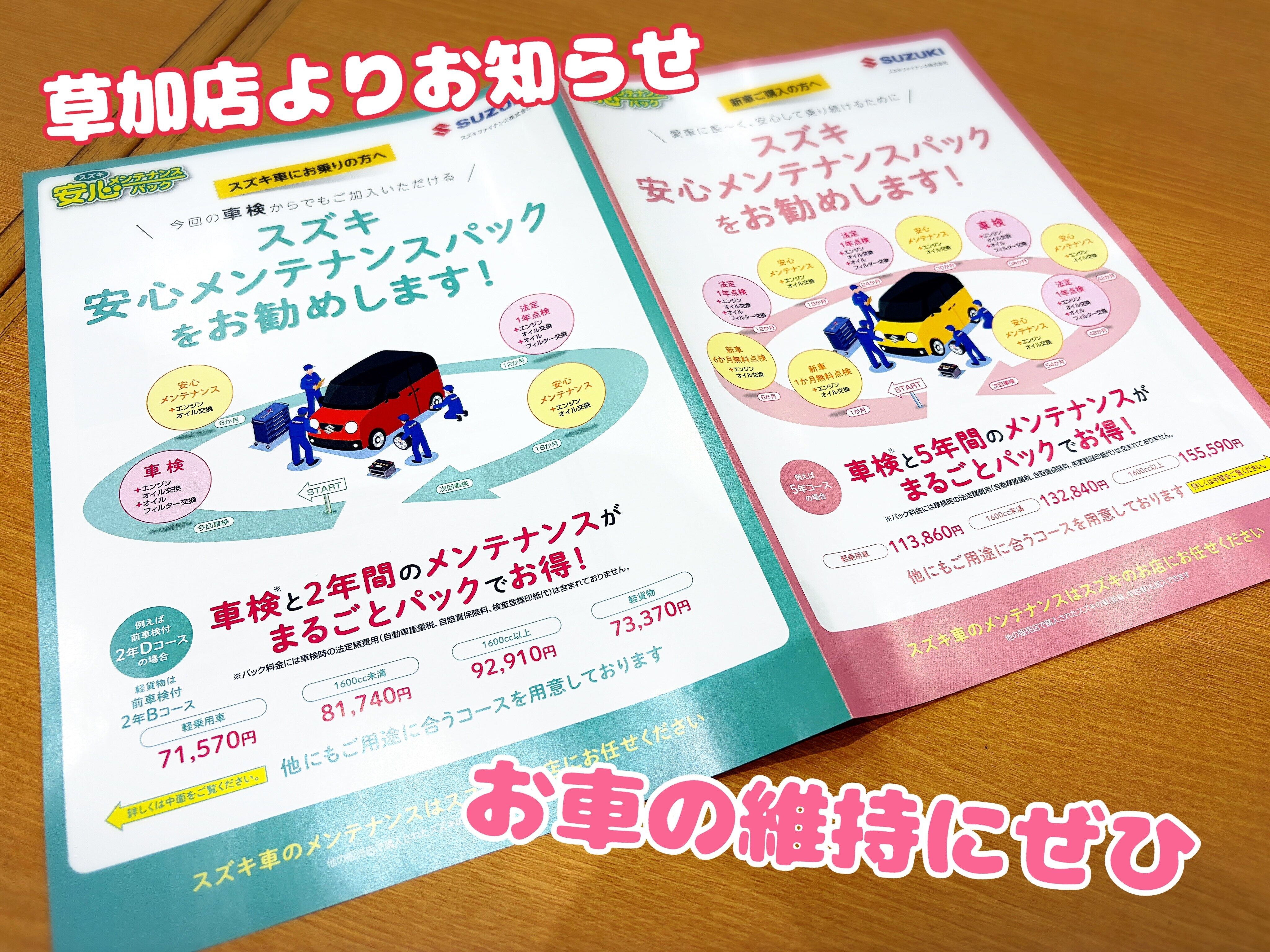 こちらは運転者の義務である法定点検とスズキが推奨している安心メンテナンス半年点検を