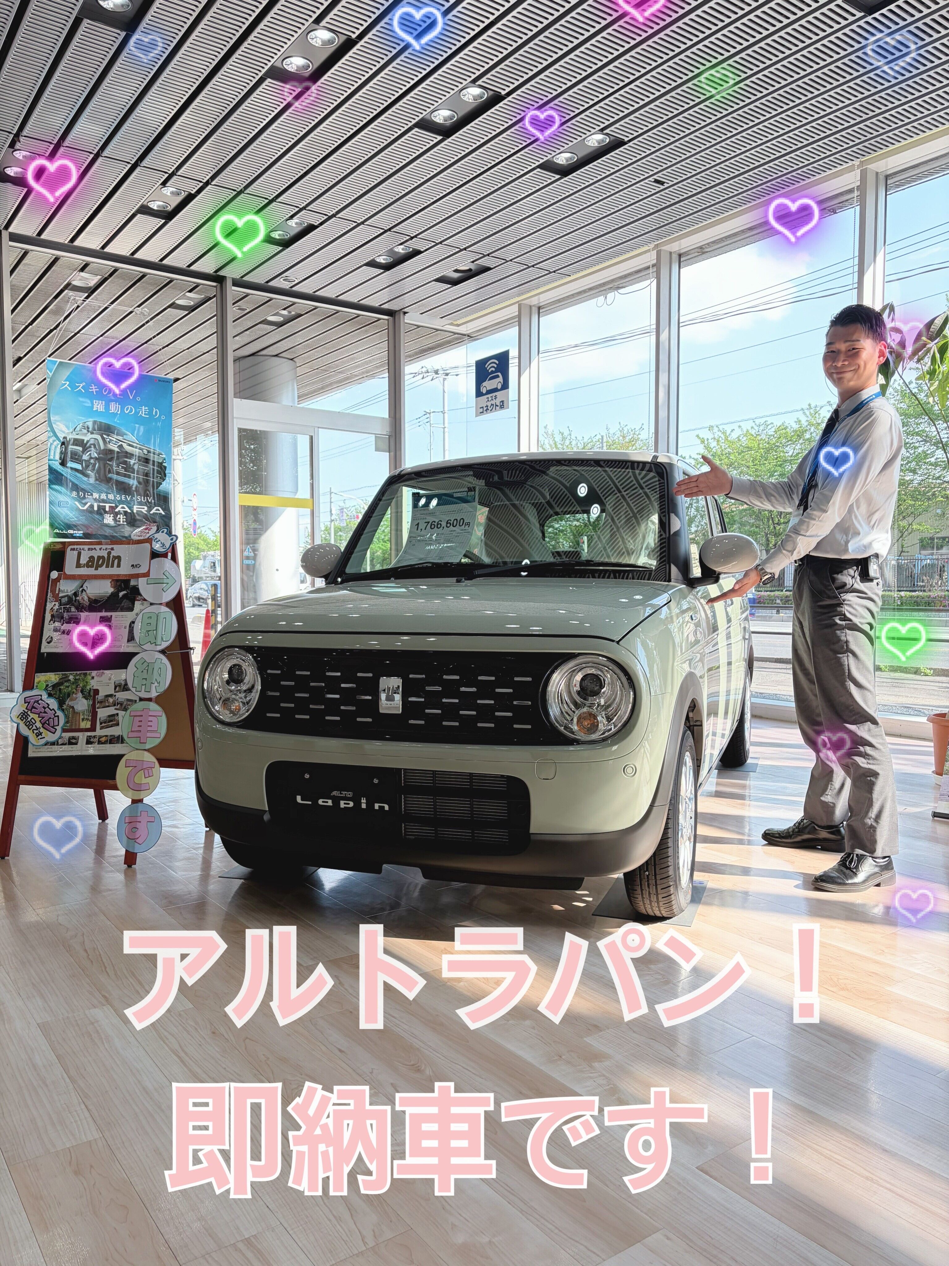 イベント/キャンペーン 2026.04.16 週末展示会のご案内 皆様こんにちは アリーナ朝霞店です 週末展示会のご案内です! こちらのラパンは即納車でございます! また、スペーシアなども在庫車両であれば短い納期でご案内が可能でございます!! 新生活に向けてお勧めできる車両がたくさんございます! 是非このご機会にいかがでしょうか。 皆様のご来店お待ちしております。