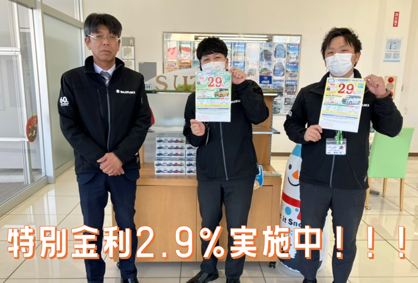 イベント/キャンペーン 2026.01.29 期間限定!特別金利でご案内!! こんにちは いつも当店のブログをご覧いただきありがとうございます クロスビー・ソリオ・スペーシアの特別金利実施中 通常金利3.9%のところ 特別金利2.9%でご案内 2026年3月31日お申込み分までとなります 新生活を新しいお車で スタートしましょう 新車ご相談は 是非三郷インター店へ