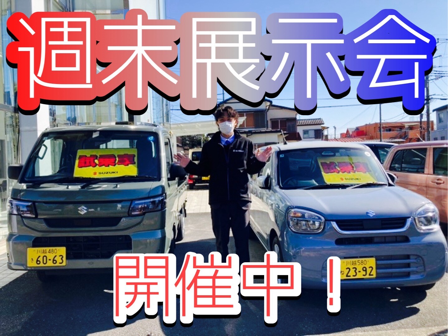 イベント/キャンペーン 2026.02.21 週末展示会開催中! お世話になっております スズキアリーナ坂戸店でございます 今週も開催致します週末展示会! キャリイ、アルト、 スペーシアギア、フロンクス、ソリオバンディット、クロスビー・・・ ご試乗者多数取り揃えております! ※ご試乗希望の際は事前にご連絡いただけますとすぐにご案内できます 何かお車気になることございませんか? 明日からの3連休も元気に営業してます! ぜひスズキアリーナ坂戸店にご来店ください! みなさまのご来店お待ちしております