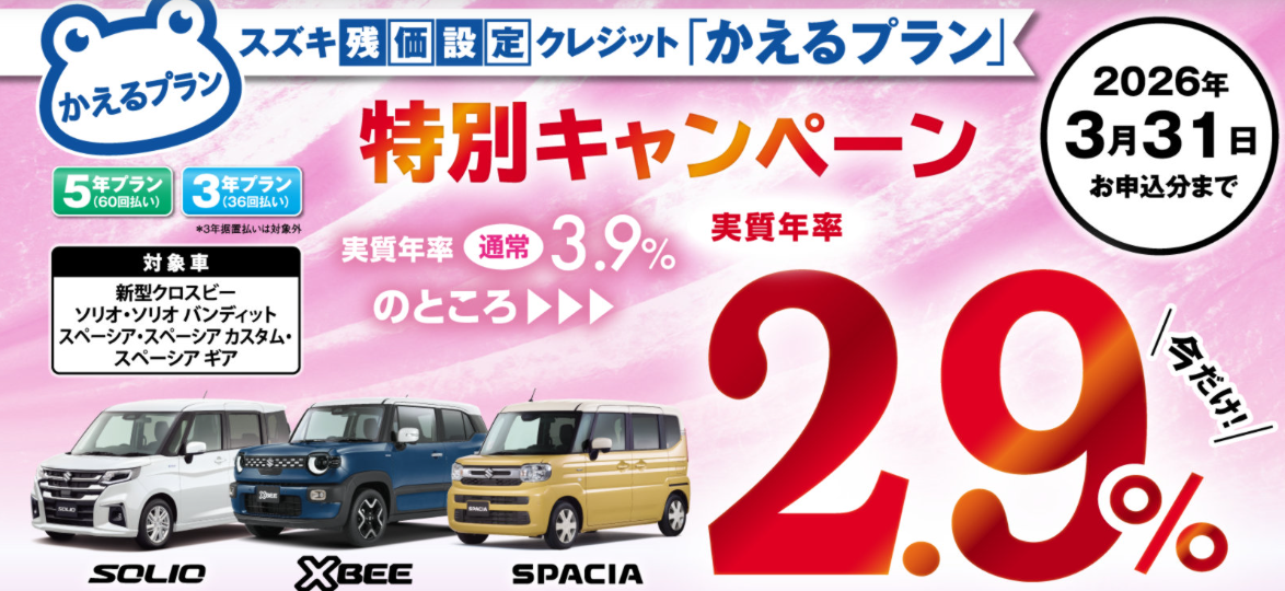 今回はスズキ残価設定クレジット「かえるプラン」特別キャンペーン