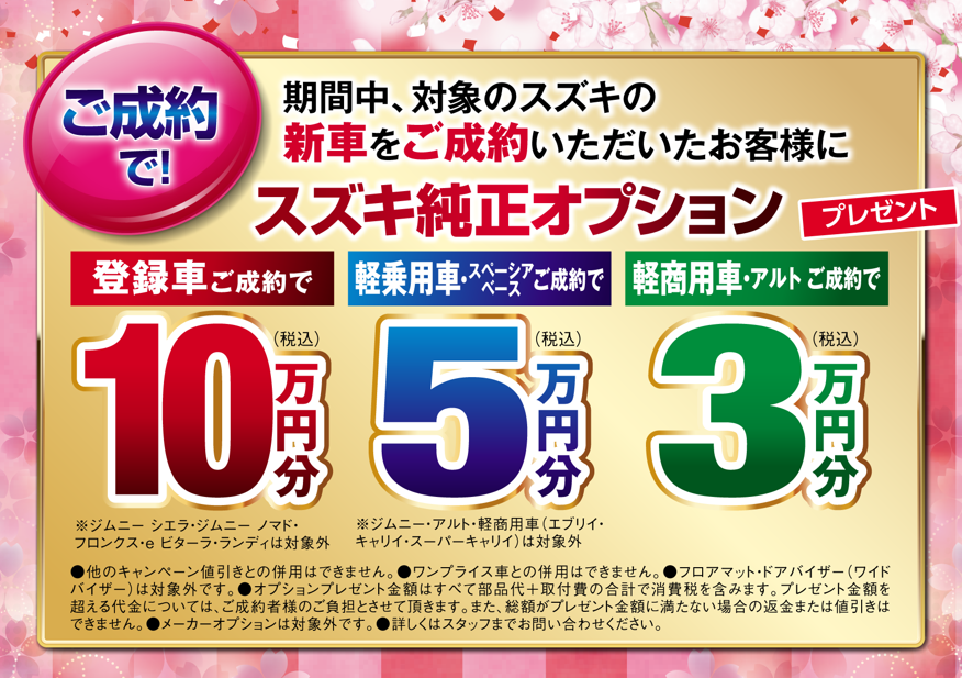 対象のスズキの新車をご成約いただいたお客様に