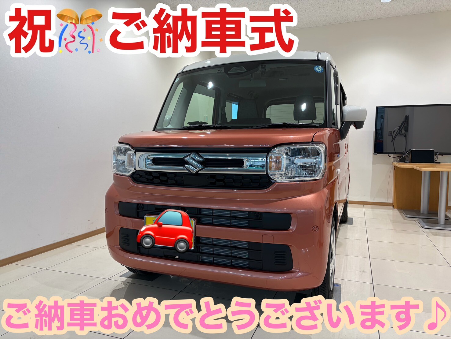 納車ギャラリー 2026.02.01 スペーシアご納車です♪ 愛車 スペーシア お客様 K様 グレード HYBRID X ボディーカラー コーラルオレンジ ソフトベージュ2トーンルーフ ご納車おめでとうございます スペーシアご納車です!! ボディーカラーは娘様のご意向もあり、 かわいらしいコーラルオレンジの2トーンを選んでいただきました! スライドドアへのお乗り換えなので、 室内も広く、快適に使っていただけると思います たくさんお出かけに使っていただけると嬉しいです! 引き続きよろしくお願いいたします