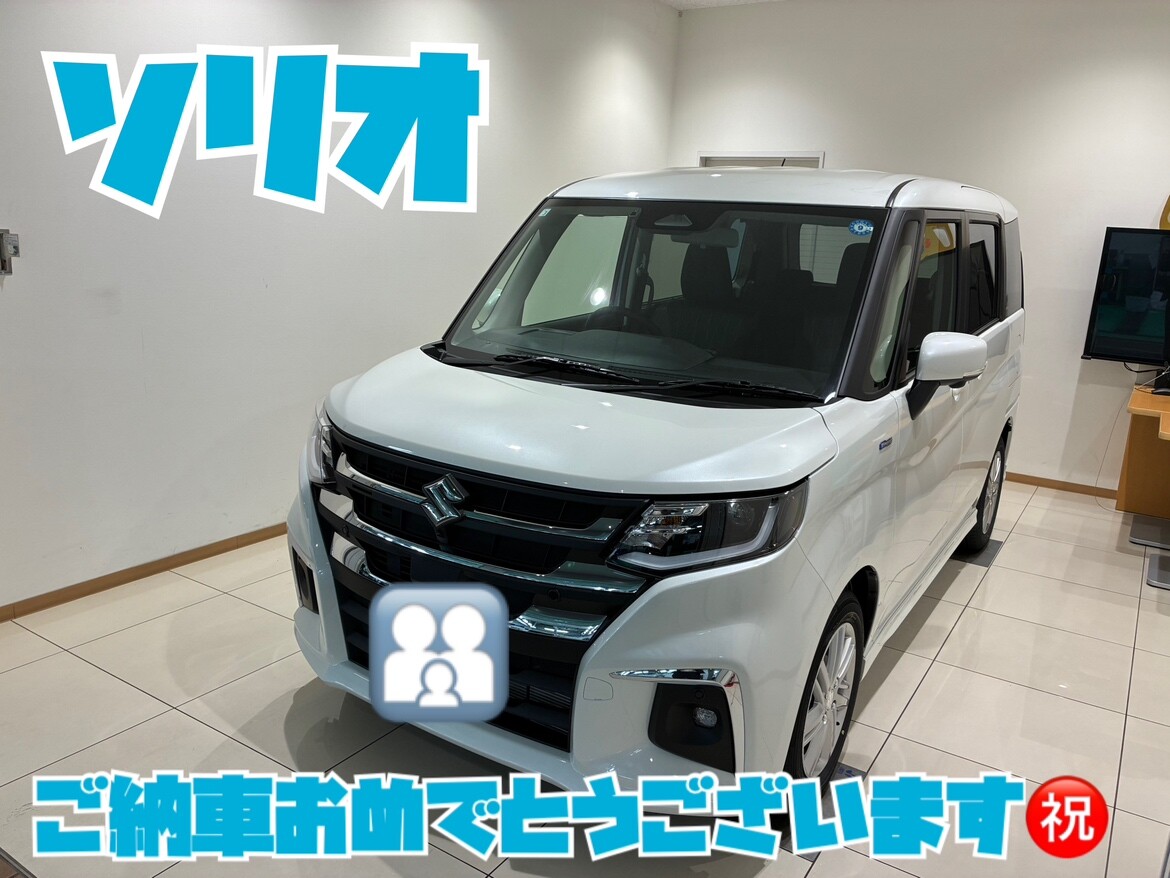 納車ギャラリー 2026.04.12 新生活にソリオを選んでいただきました! 愛車 ソリオ お客様 R.H様 グレード HYBRID MZ 3型 ボディーカラー ピュアホワイトパール ご納車おめでとうございます そろそろお子様が産まれると、家族で便利なスライドドアを選んでお乗り換えいただきましたご家族みなさんで乗っていただける姿を楽しみにしています今後も木更津店をよろしくお願い致します