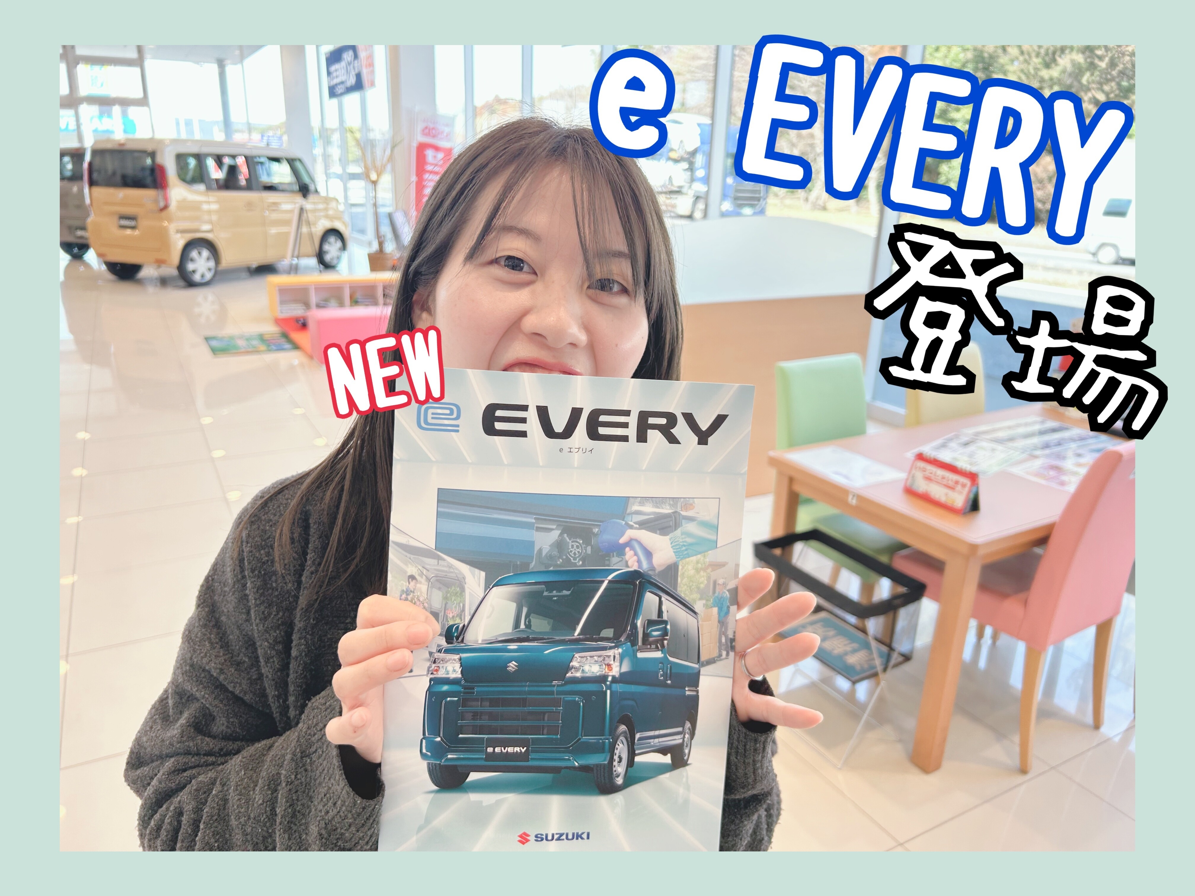 新車情報 2026.03.09 eEVERY 登場 こんにちは。ノグチです。 本日は新型車のご案内です( *´艸`) e EVERY誕生!! EVならではの環境性能 燃料を燃やさずオーターで走るので走行中のCO2や大気汚染の排出は無い! EVならではのパワフルな走り レスポンスの良い力強い発進となめらかな加速 予防安全技術「スマートアシスト」搭載。 カタログも入荷しておりますので気になる方は是非!