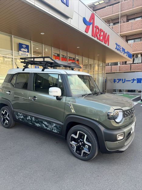新車情報 2026.01.28 お店のクロスビーがかっこよくなりました! 皆様こんにちは アリーナ習志野です!いつもアリーナ習志野のHPをご覧いただきありがとうございます! 試乗車のクロスビーがかっこよくなりました! ・ルーフキャリア ・ドアスプラッシュガードパネルデカール ・ドアハンドルエスカッション ・フェンダーガーニッシュ これらが付き、アウトドアスタイルになりました! 納車後に付けておけば良かったとの声を聞きます。 こちらのアウトドア仕様は習志野店で ご試乗いただけます! ぜひ店頭でお待ちしております。