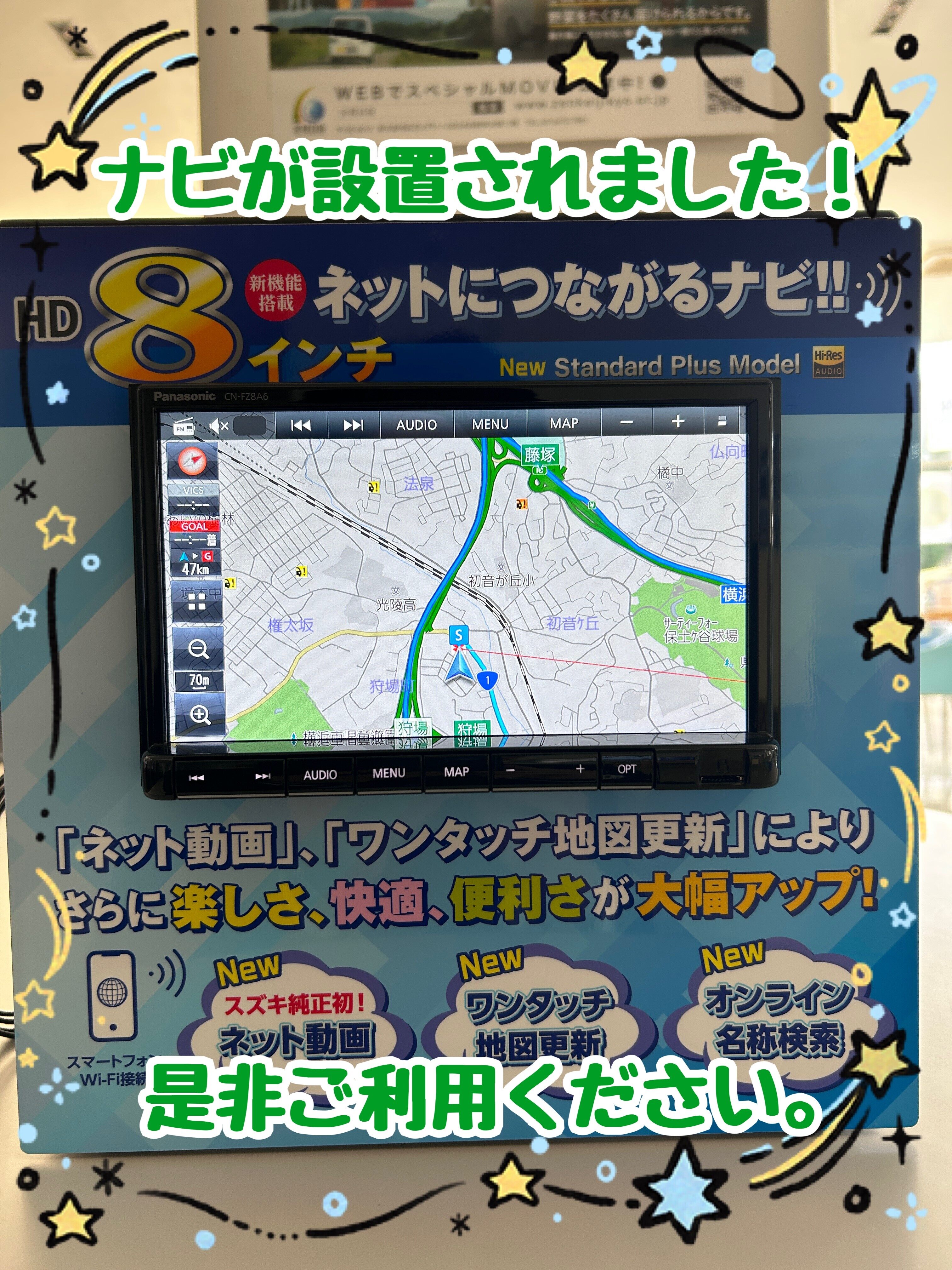 その他 2025.11.27 ディーラーオプションナビが設置されました! こんにちは スズキアリーナ大田でございます。 この度、当店にPanasonicのディーラーオプションの ナビをご用意させていただきました! 実際に操作することも出来ますので是非ご活用ください。 皆様のご来店をお待ちしております!