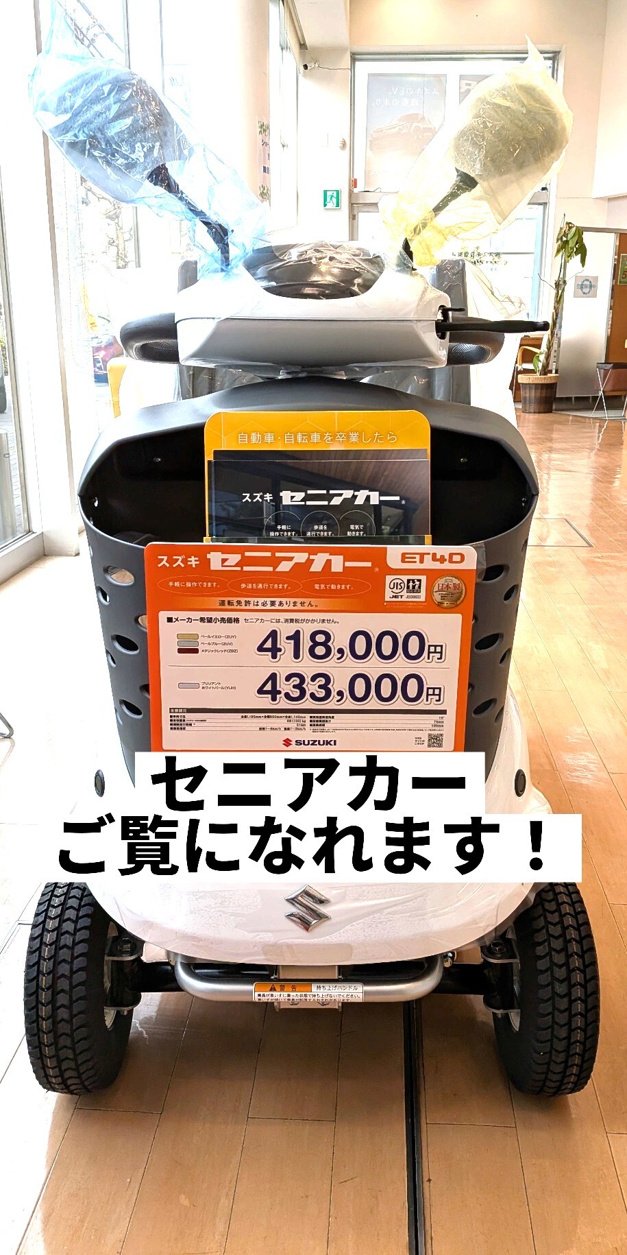 その他 2025.12.25 当店にセニアカー展示車ございます! HP御覧頂きましてありがとうございます! 当店にセニアカー入ってきました! 運転免許を返納しても、 行きたい場所へ。行きたいときに。 操作方法も手軽で 歩道を走行できて安心です! 当店にて展示車ございますので 気になる方是非お立ち寄りください!