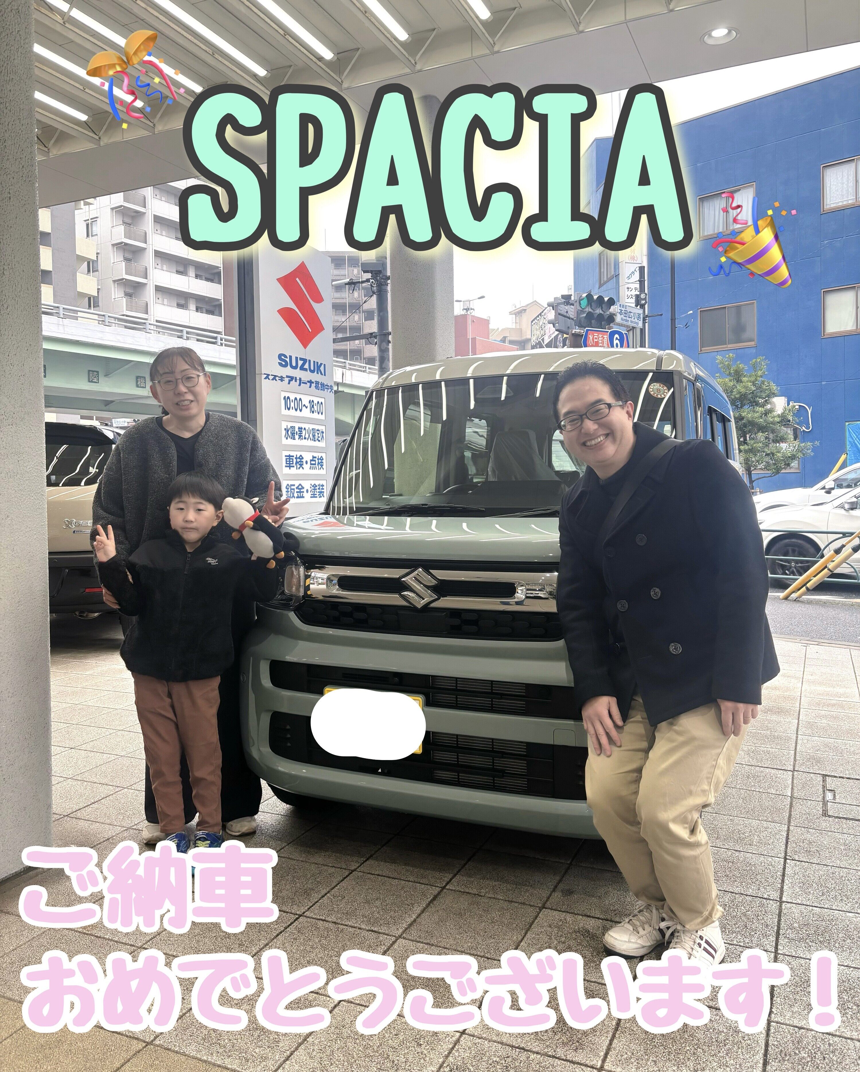 納車ギャラリー 2025.12.21 スペーシア納車させていただきました! 愛車 スペーシア お客様 M様 グレード HYBRID X ボディーカラー オフブルーメタリック ソフトベージュ2トーン こんにちは! スズキアリーナ葛飾中央です この度、M様にスペーシア納車させていただきました おめでとうございます お色はオフブルーメタリックソフトベージュの2トーンカラー 爽やかなお色でとても気に入っていただけました! ご家族でお出かけ楽しんでいただけると嬉しいです 素敵なカーライフとなるよう、スタッフ一同全力でサポート させていただきます 今後ともよろしくお願いします