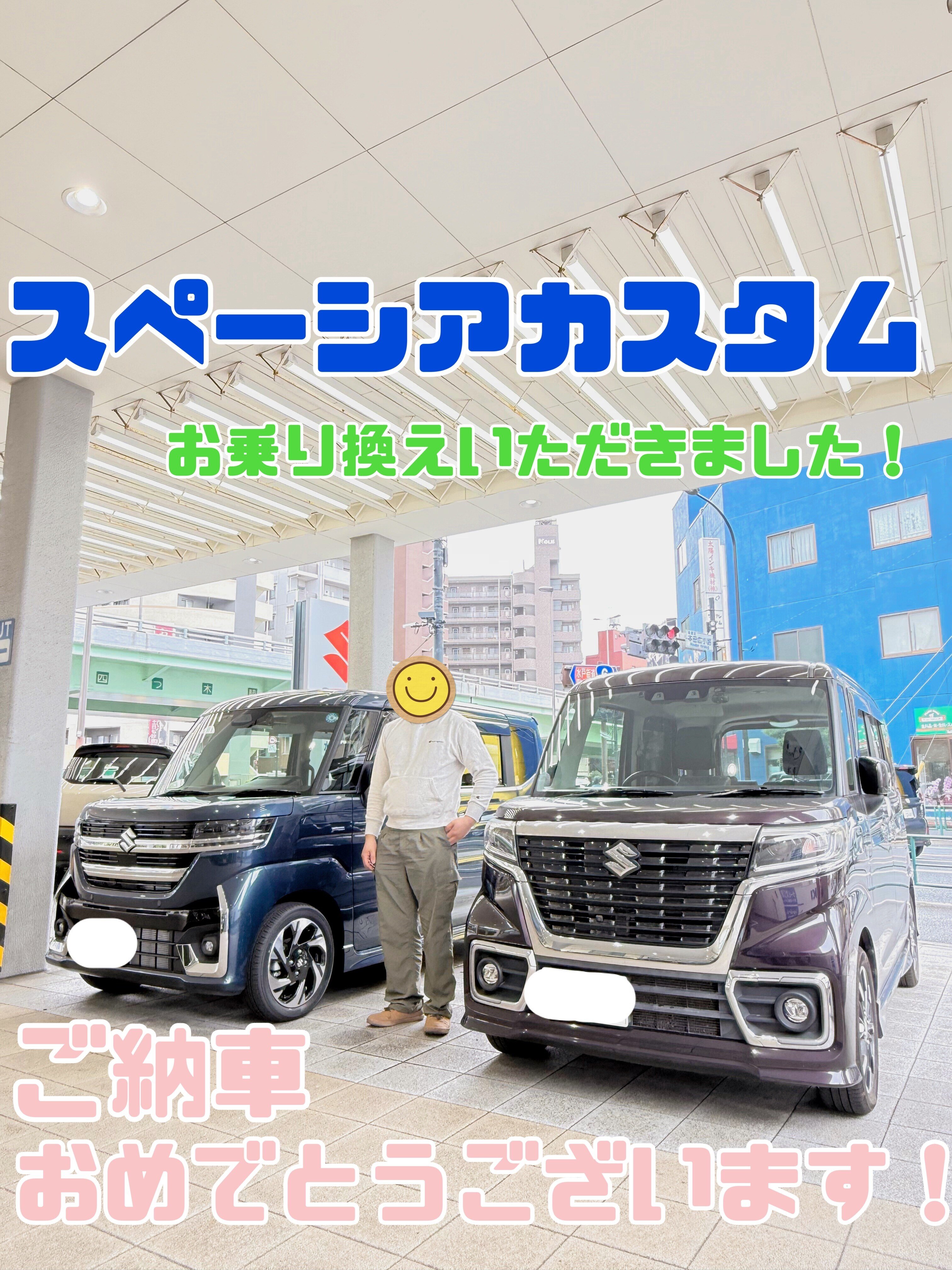 納車ギャラリー 2026.04.05 スペーシアカスタムへお乗り換えいただきました! 愛車 スペーシア カスタム お客様 S様 グレード HYBRID XSターボ ボディーカラー インディゴブルーメタリック こんにちは! アリーナ葛飾中央店です! いつもご覧いただきありがとうございます! 本日は、スペーシアカスタムご納車させていただきました! S様、おめでとうございます! スペーシアカスタムから新スペーシアカスタムへお乗り換えいただきました! ありがとうございます! これからも素敵なカーライフをお過ごしください! スタッフ一同、サポートさせていただきます!