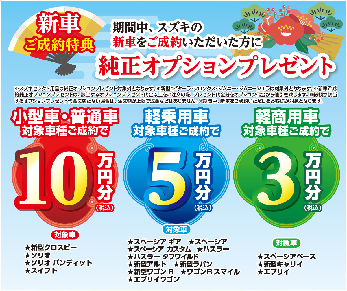 新車ご成約特典として