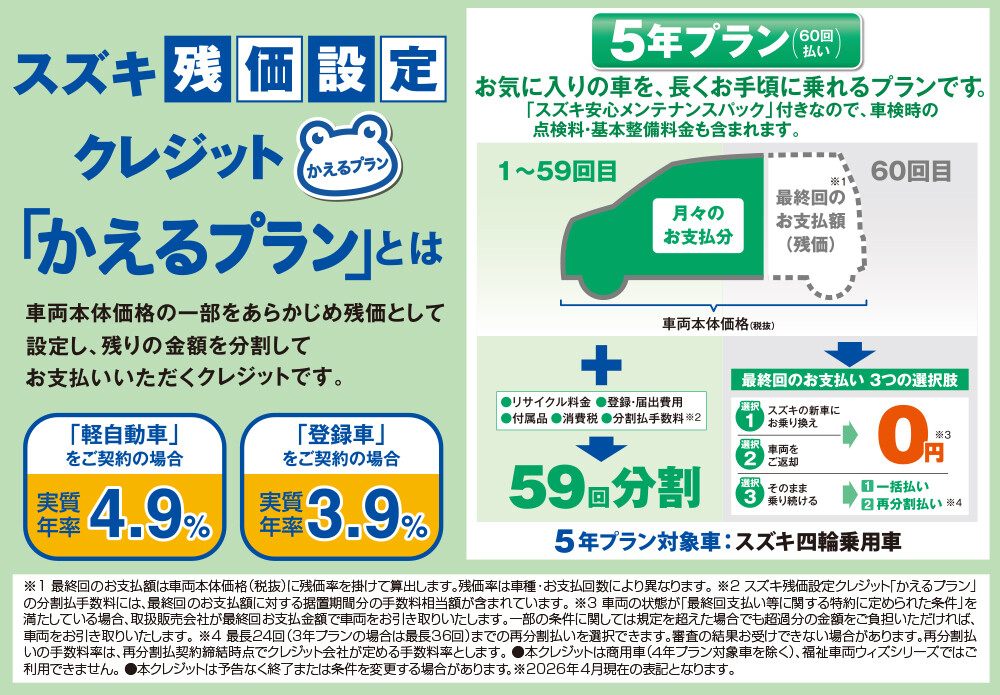 ※ジムニー、ジムニーシエラ、ジムニーノマド、フロンクスは対象外とさせて頂きます。