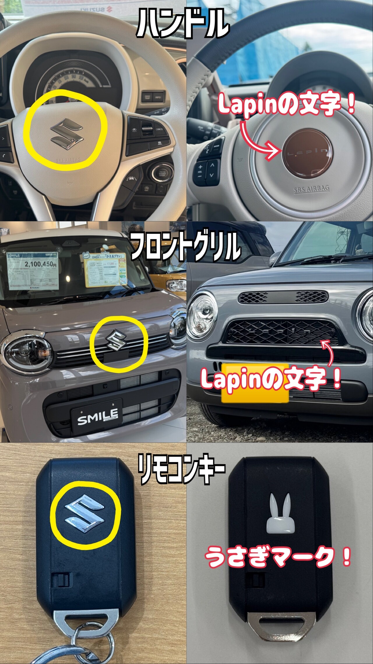 他の車種ではスズキの「S」マークが入るところに