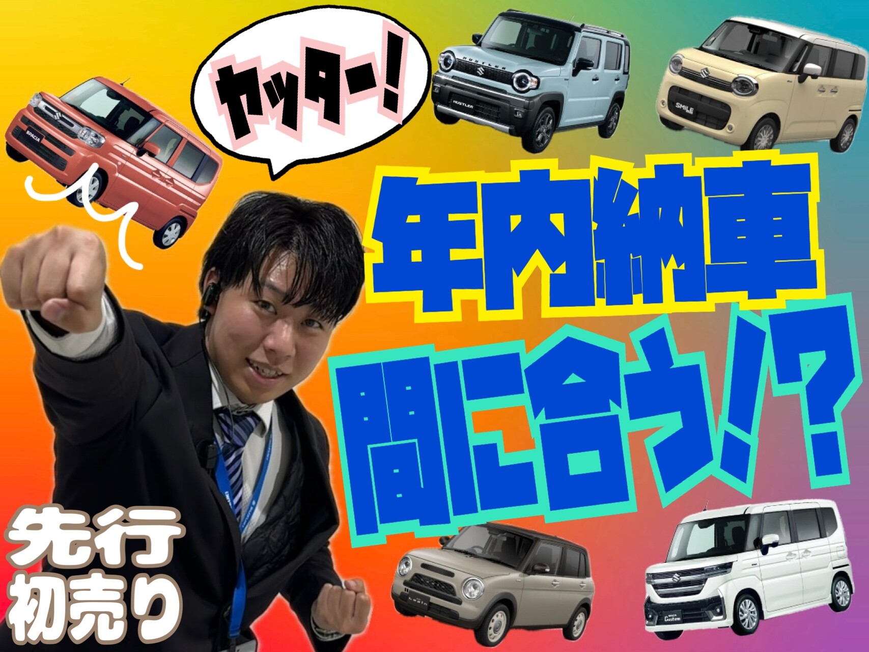 新車情報 2025.12.12 年内納車!まだ間に合うかも!?!? 新車なのに!?!? 年内納車が間に合うかも!? 早い者勝ちですが、車種により 納期の早いものがあります!! 現在先行初売り開催中 2025.12. 6~27 その後、年末年始の休業 (2025.12.28~2026.1.3) そして年始の初売り、、、!!! 今なら安いし早い このタイミングを逃すと、 納期が延びる可能性もあります お急ぎの皆様!! 今すぐご相談下さい WEB予約はコチラ 042-533-4321 ご予約お待ちしております!