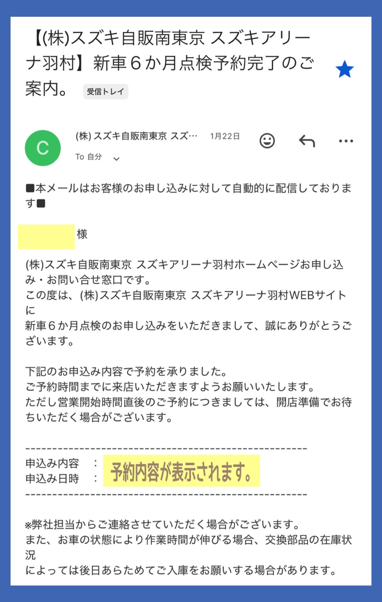 予約完了後はメールが届く!