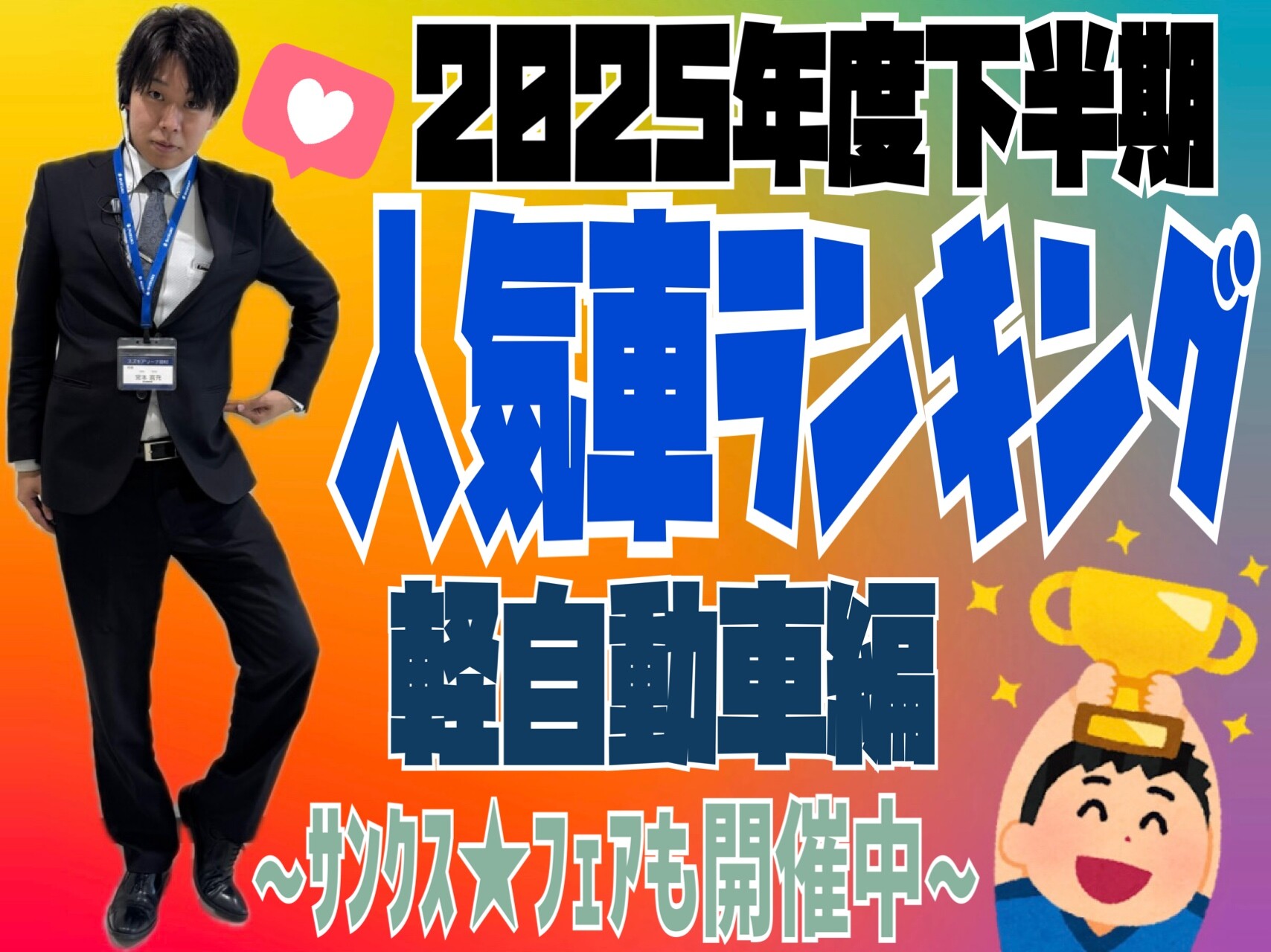 その他 2026.02.19 2025年度下半期人気車ランキング! スズキアリーナ羽村店 2025年度下半期 人気軽自動車 ランキング (乗用・商用問わず) 注文が多かった車種を 調査しました 第3位 ハスラータフワイルド 見た目のかっこよさから 通常のハスラーより人気! 加速が良いのに燃費も◎ 第2位 エブリイ(商用) 乗用のエブリイワゴンも 同じくらい人気がありました! 特にハイルーフが好評です! 仕事使いや車中泊など、、、 使い勝手が良すぎます!! 第1位 スペーシアカスタム 圧倒的人気でした!!! スペーシア・スペーシアギア と3種シリーズがありますが カスタムのみ倍近く売れてます! 安全装置も装備も最上級 試乗車検索はコチラ サンクス★フェア 大好評です!! まだまだ開催中です!! 金利2.9%はホントに お得です!!! 今のうちにお申し込みください!! オプションサービスが充実!! 皆様のご来店を お待ちしております! 042-533-4321