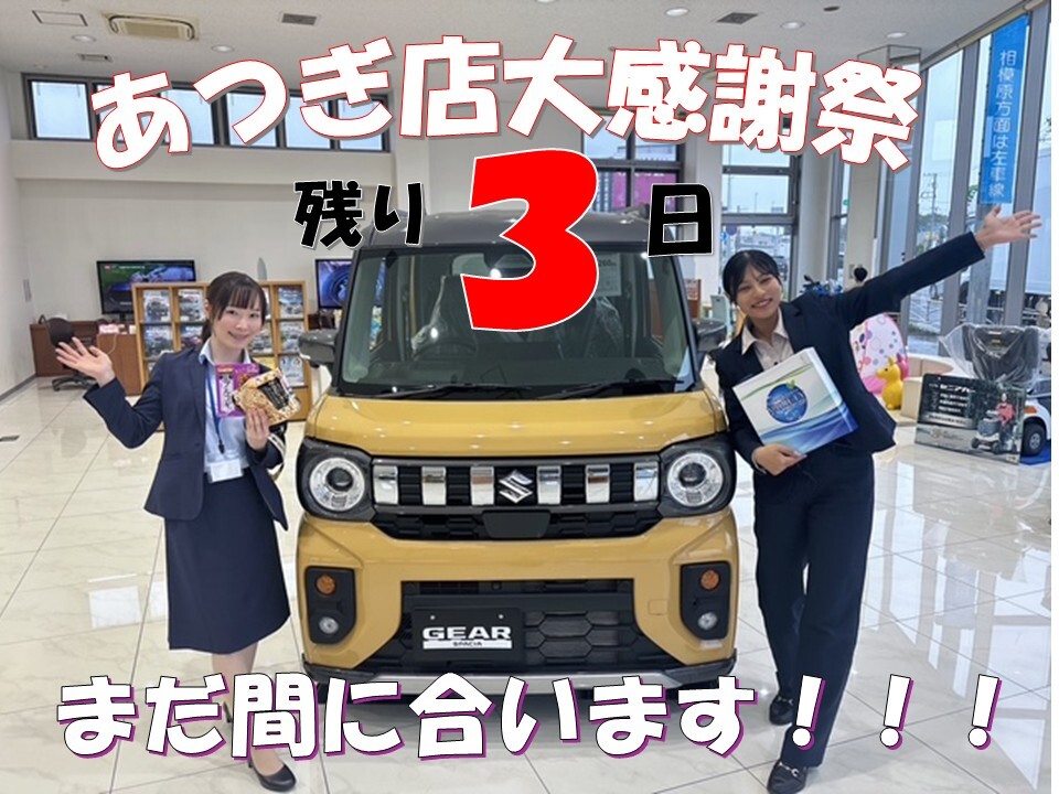 イベント/キャンペーン 2026.04.22 あつぎ店大感謝祭!ラストスパーーート!! みなさまこんにちは 中古車営業のしむらです! ただいまあつぎ店では お客様感謝祭 を開催しております 新店長の就任を記念して 行っているイベントですが 開催期間も 残り3日 ご来場いただいた皆様には ささやかですが プレゼントを用意しております みなさまのご来店 心よりお待ちしております