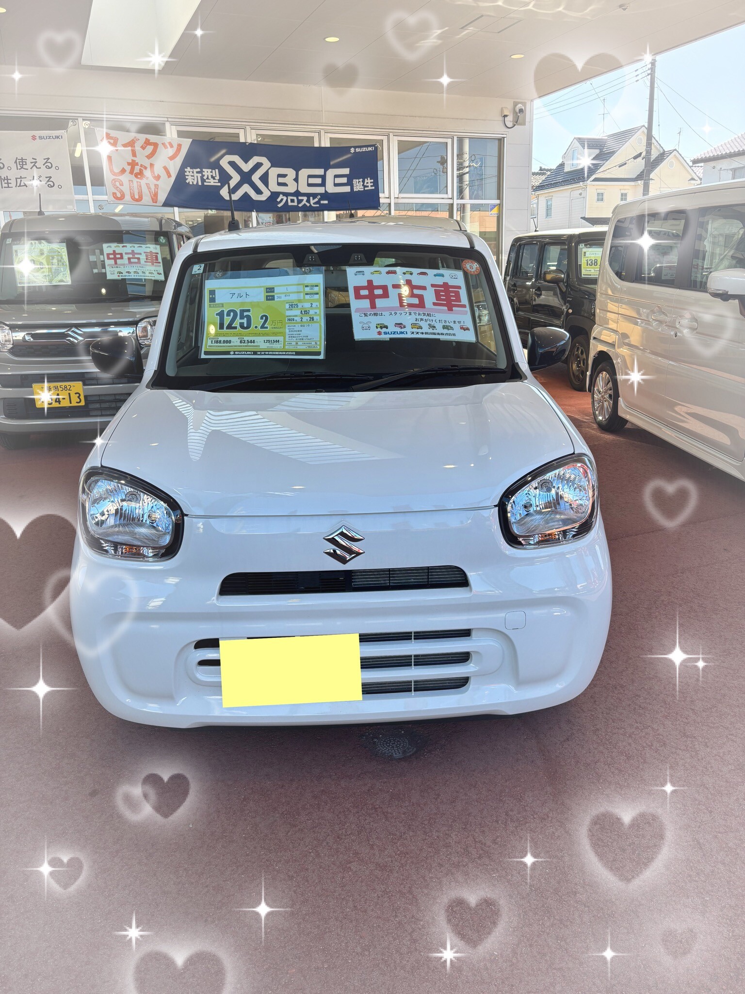 スタッフによるクルマ紹介 2026.02.26 newෆ ̖́-中古車 車名 スペーシア カスタム こんにちは寺山店です 寺山店に新しく仲間入りした中古車のご紹介です スペーシアカスタム HYBRID GS ZVR ピュアホワイトパール 走行距離 5km 初度登録 2025/12 車検満了日 2029/12/24 アルト L 26U ホワイト 走行距離 4,157km 初度登録 2025/02 車検満了日 2029/02/26 他にも中古車ご用意しております 気になる方はぜひ寺山店まで!!