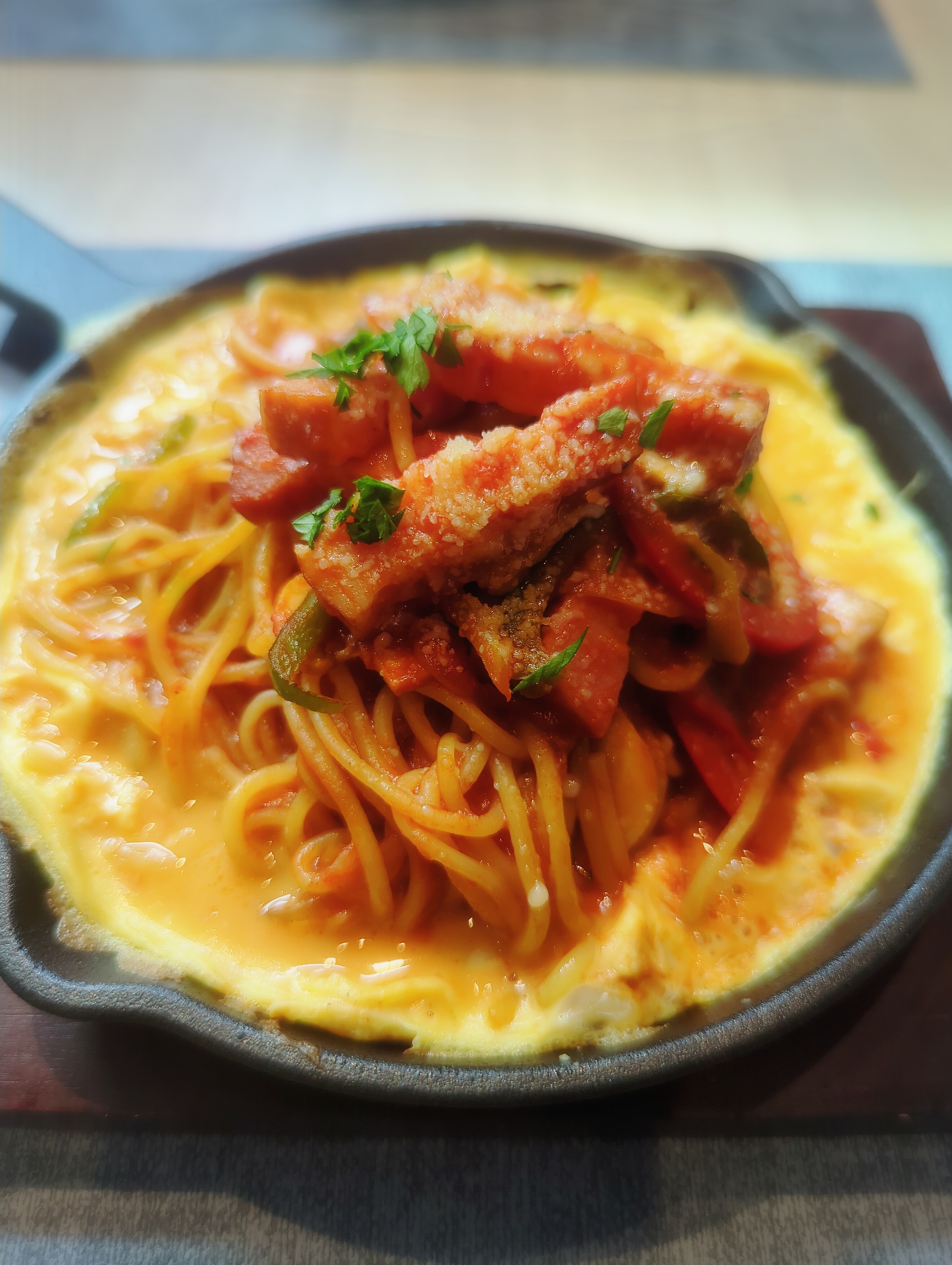 鉄板に盛られたナポリタンはめちゃウマですね
