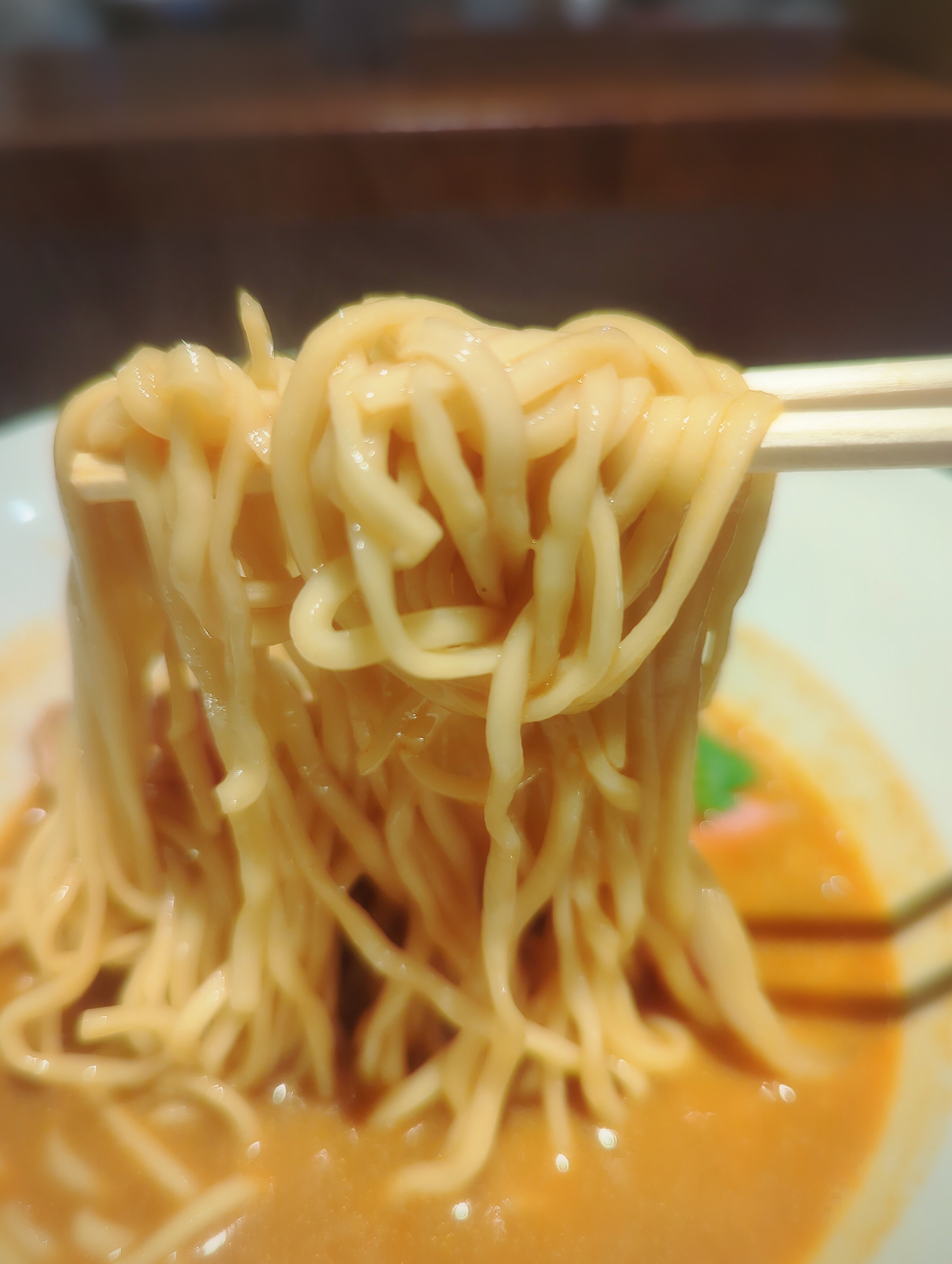 麺を引き上げれば香るエビ
