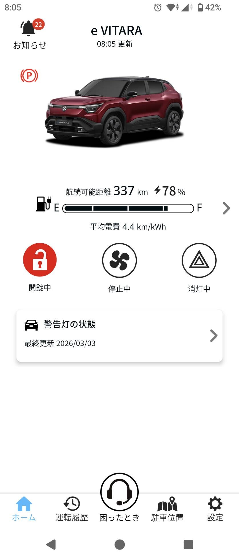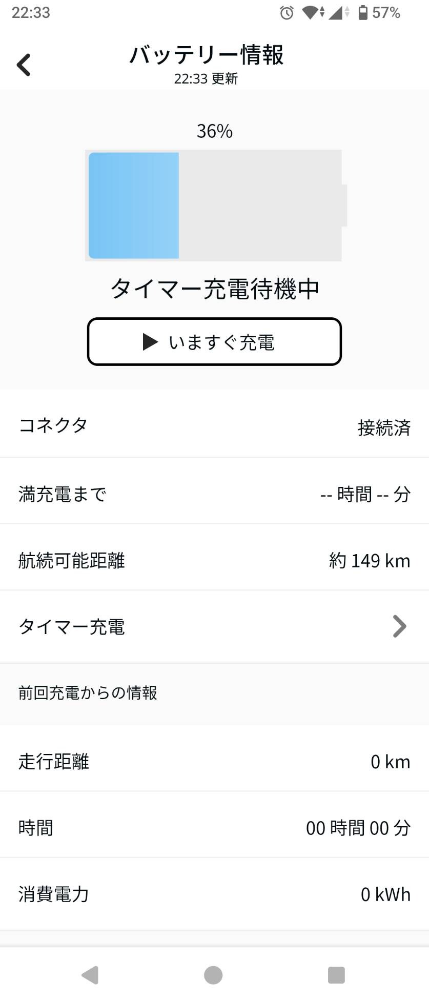朝になってスズキコネクトのアプリで充電量を確認したら