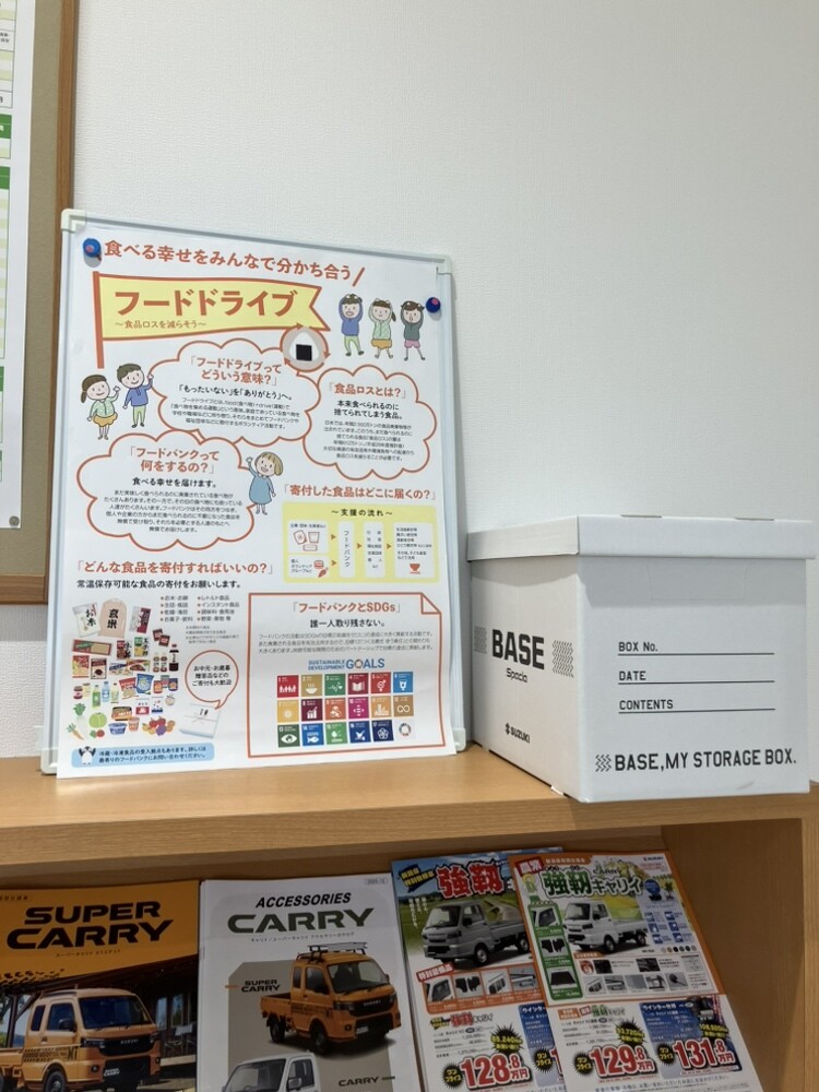 その他 2026.02.26 上越でもフードバンクに寄付させていただきました 皆様こんにちは スズキアリーナ上越中央です スズキ自販新潟は食品の寄付・フードドライブに参加しております。 この度、上越エリアではくびき野NPOサポートセンター様に寄付させていただきました。 ショールームにもフードドライブについてのポスターを掲示しております。 ご来店の際はぜひご覧ください。
