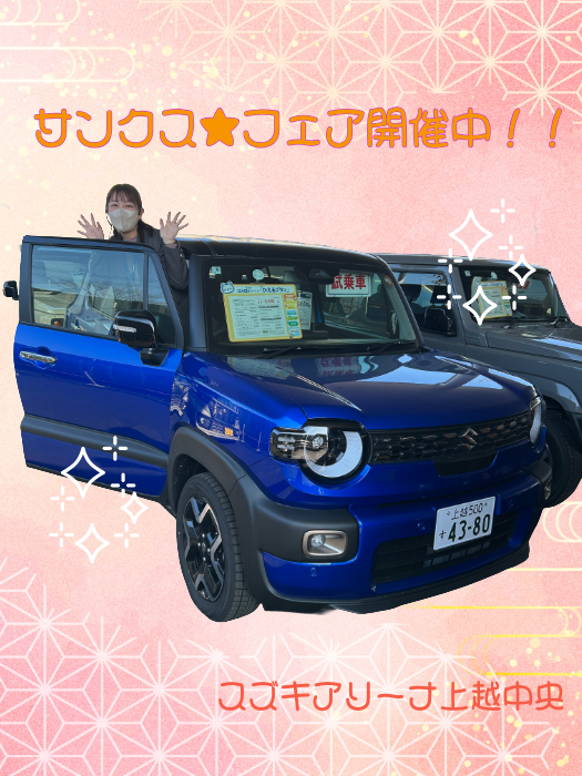 イベント/キャンペーン 2026.03.20 3連休はご試乗いかがですか♪ こんにちは! スズキアリーナ上越中央です サンクスフェアも残すところ2週間となりました! 皆様、もうお越しいただけたでしょうか? 新車をご成約いただいた方に、 お得な特典盛りだくさんとなっております 3連休はスズキでご試乗いかがでしょうか 皆様のご来店を心よりお待ちしております