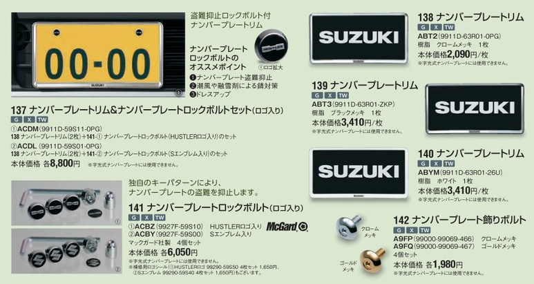 (2026年1月17日現在のハスラーのアクセサリーカタログより)