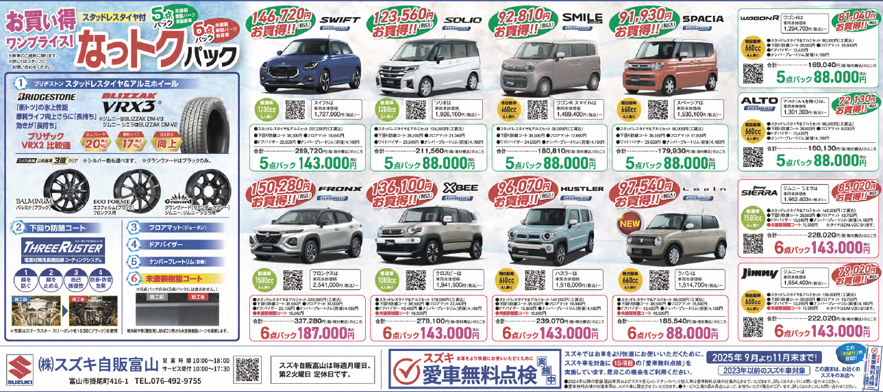 ※令和6年式&7年式のお車、及びメンテナンスパック会員様は対象外となります