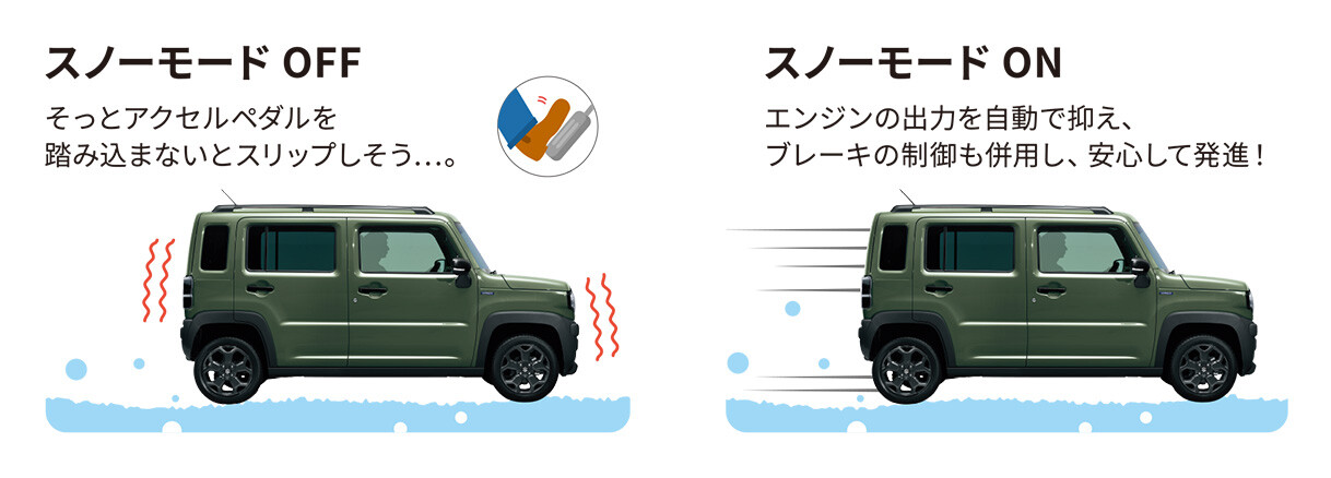 スノーモードは雪道でも安心して走行できる機能となっています