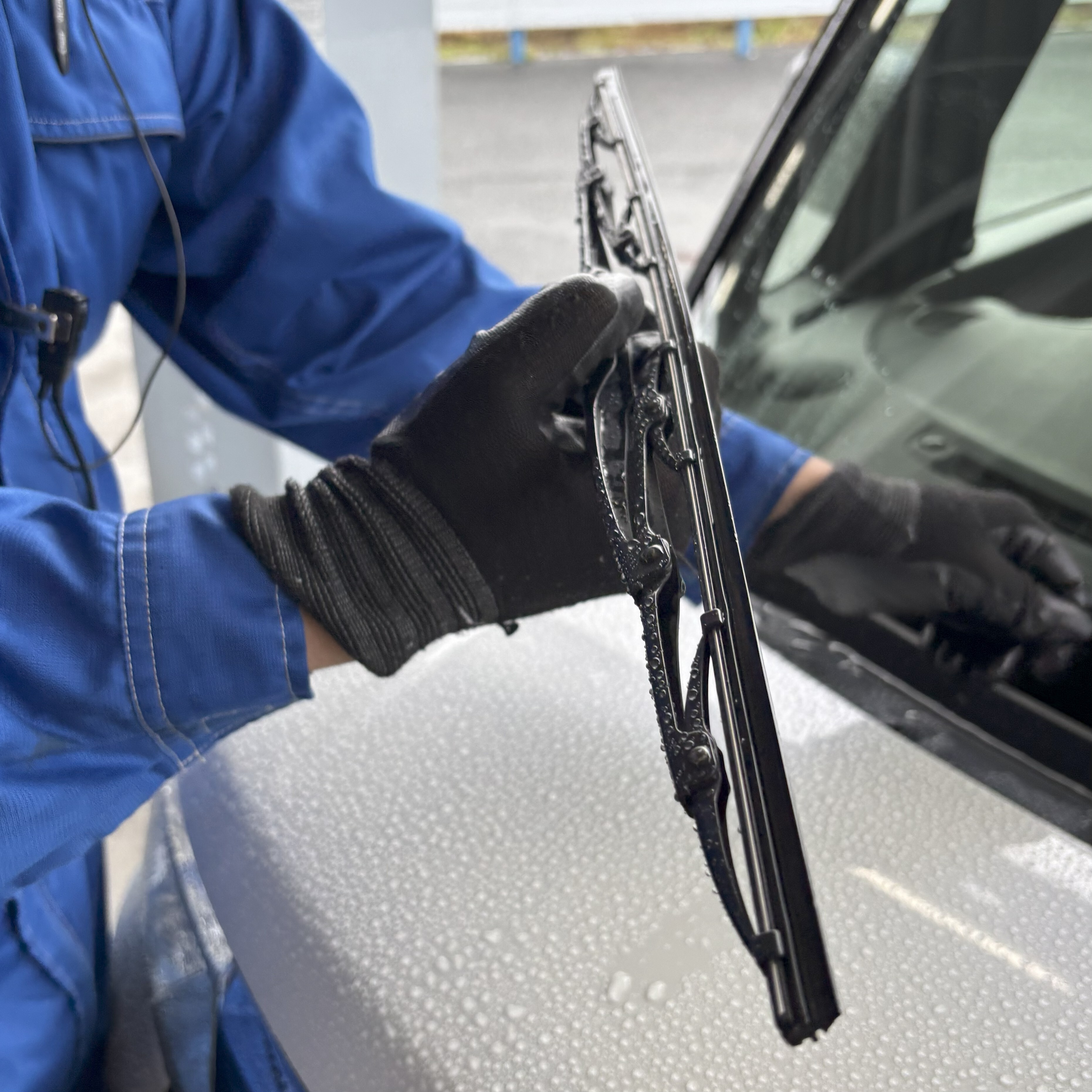 その他 2025.10.26 ワイパーの状態は大丈夫ですか? こんにちは サービススタッフのかとうです 最近天候のすぐれない日が続きますね 雨の日の必需品であるワイパーの状態 みなさんはチェックしていますか ワイパーの状態が悪いとこのように拭きムラが出てしまいます また、ビビリ音の原因にもなるので定期的な交換がおすすめです 劣化しているワイパーは先が曲がっているので確認してみてください 新品のワイパーでガラスを拭くと水滴も残らずとてもきれいです 通常ワイパーは一本1100円 撥水ワイパーは一本1500円 で交換できます お気軽にご相談ください