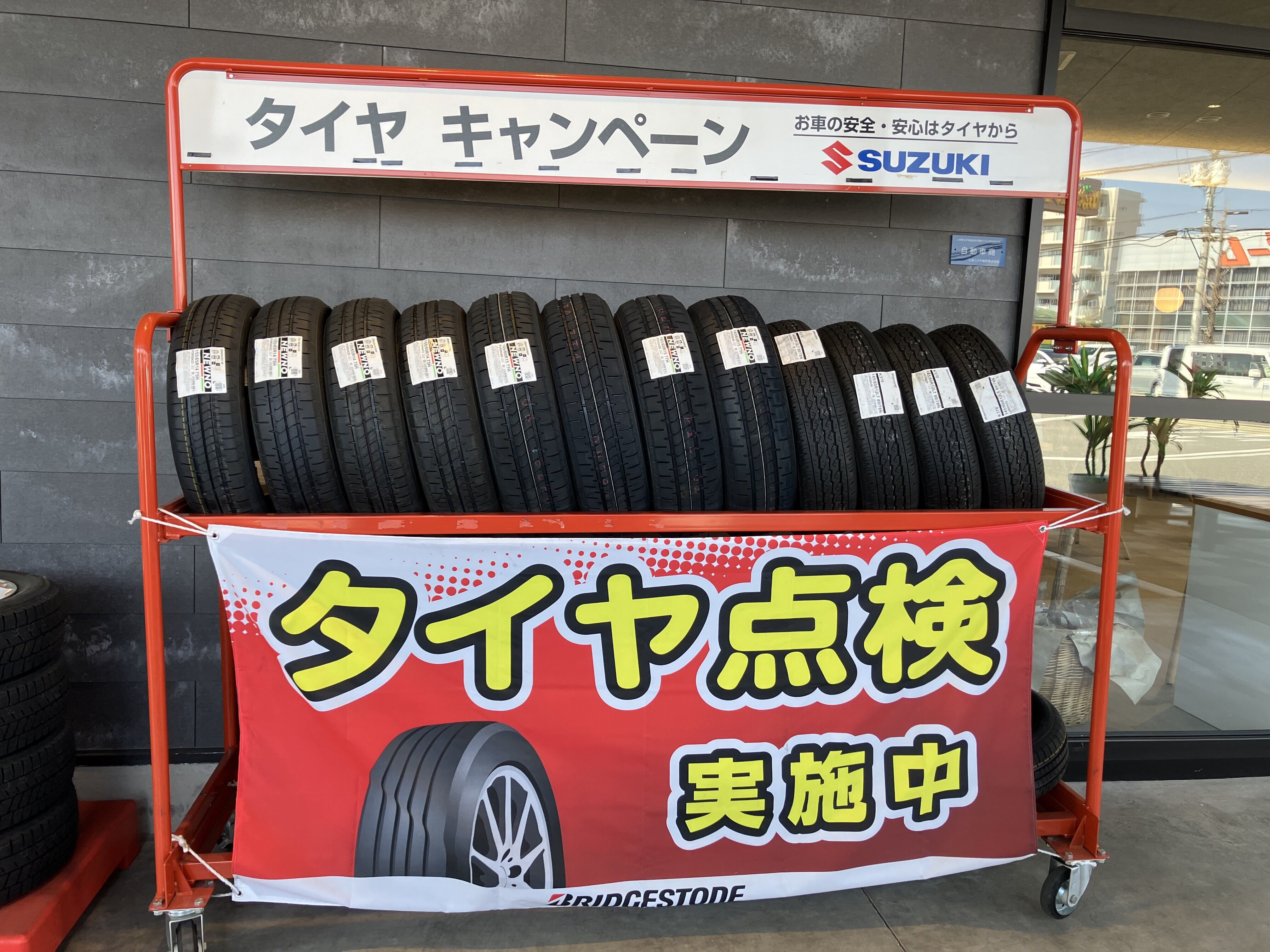 イベント/キャンペーン 2026.03.21 タイヤキャンペーン始まりました。 皆様こんにちは サービスの深沢と申します だいぶ気温も高くなり過ごしやすくなりましたが 皆様いかがお過ごしでしょうか 春休みなどでお出かけも増えるこの時期に おススメなのがタイヤキャンペーンです 3月1日より5月末日まで タイヤがお得に購入できるキャンペーンを実施してます タイヤの溝や亀裂等確認しますので お気軽にお声がけ下さい