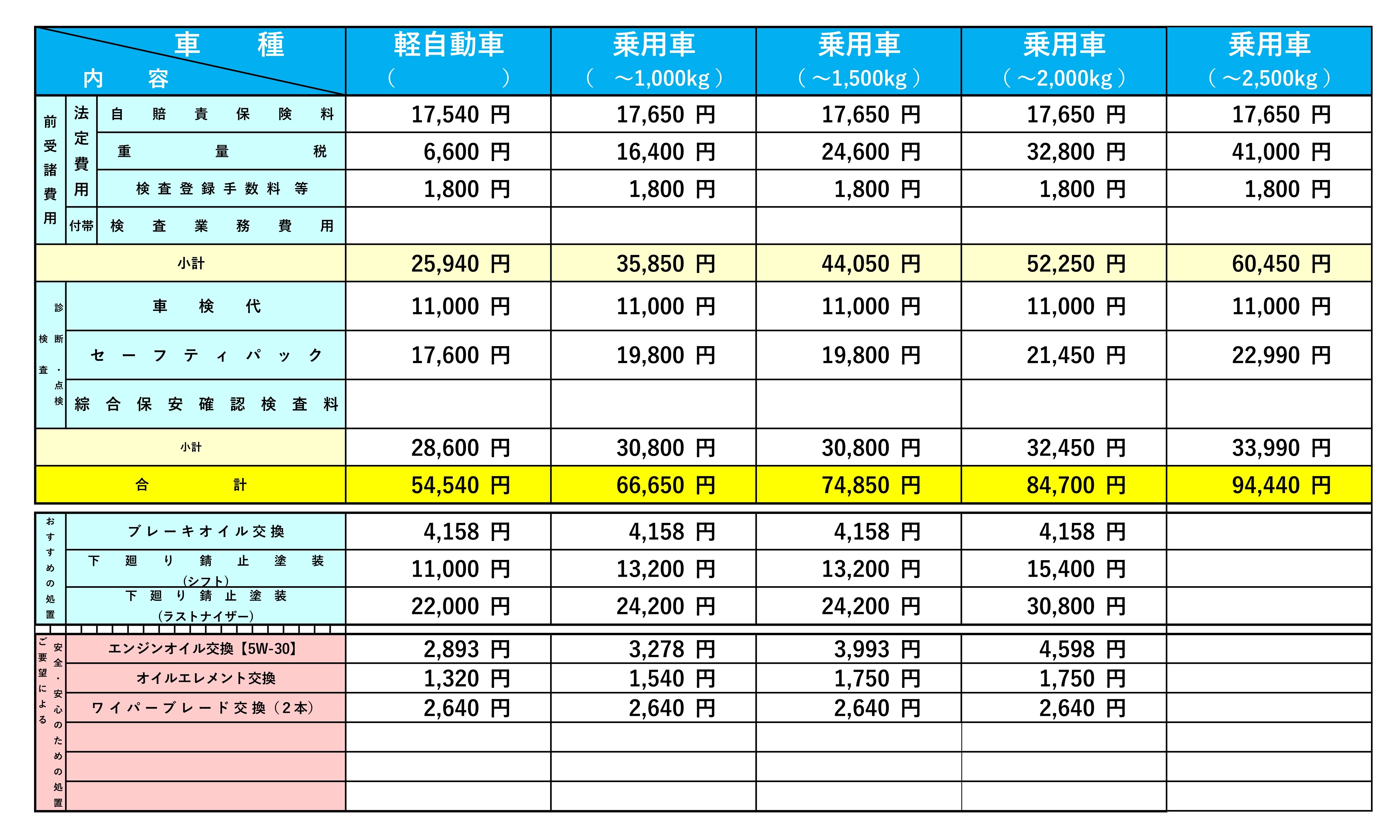 当店の整備料金のご案内について