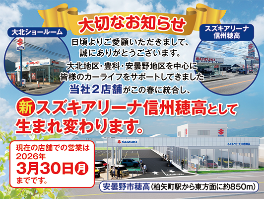 【スズキアリーナ信州穂高】として