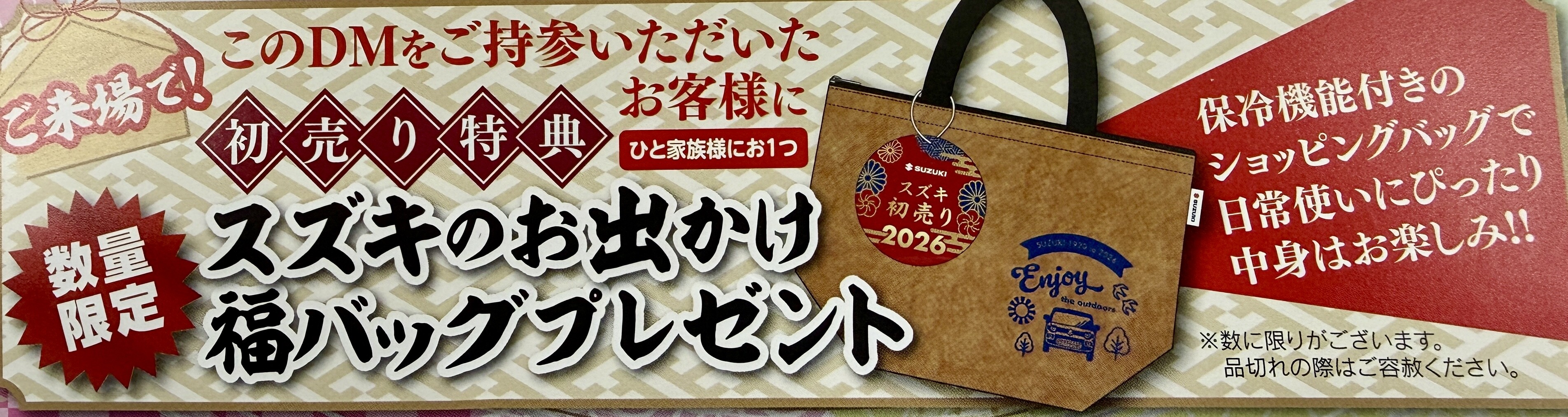 スズキ初売りDMお持ちのお客様ひと家族にお一つ