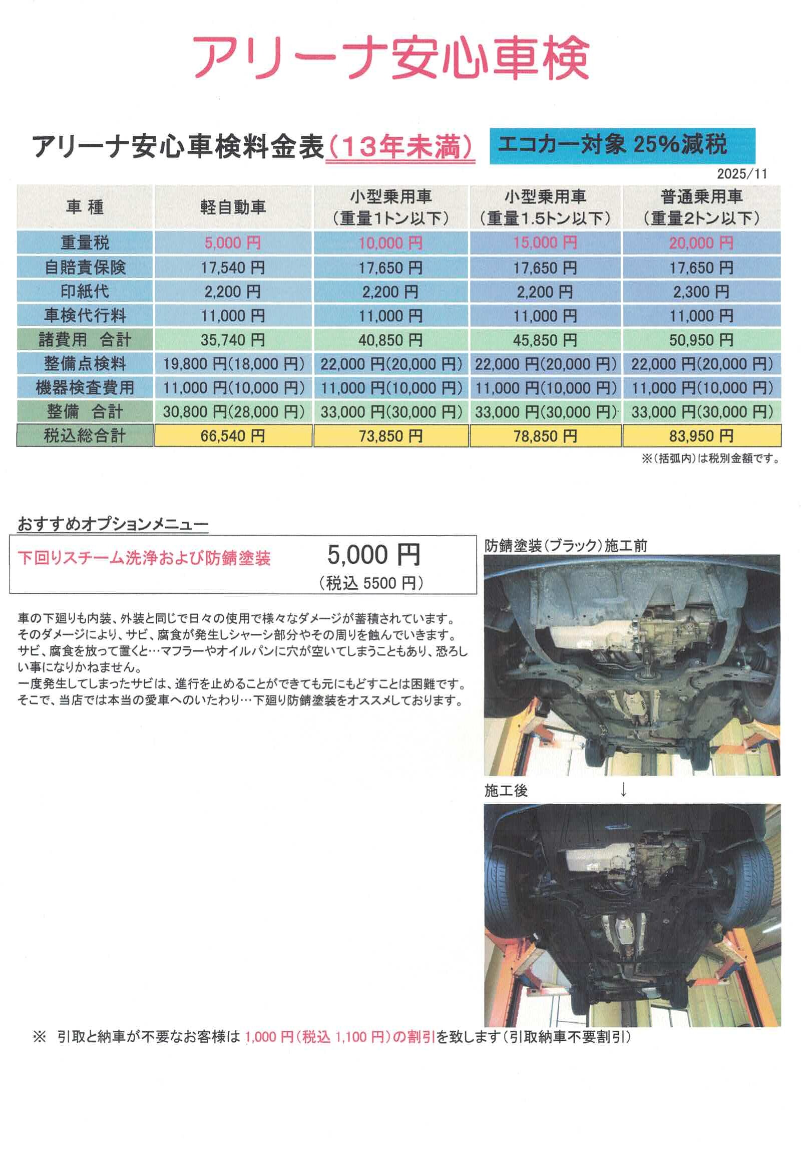 車検整備(初度登録から13年未満・13年未満+エコカー25%減税)