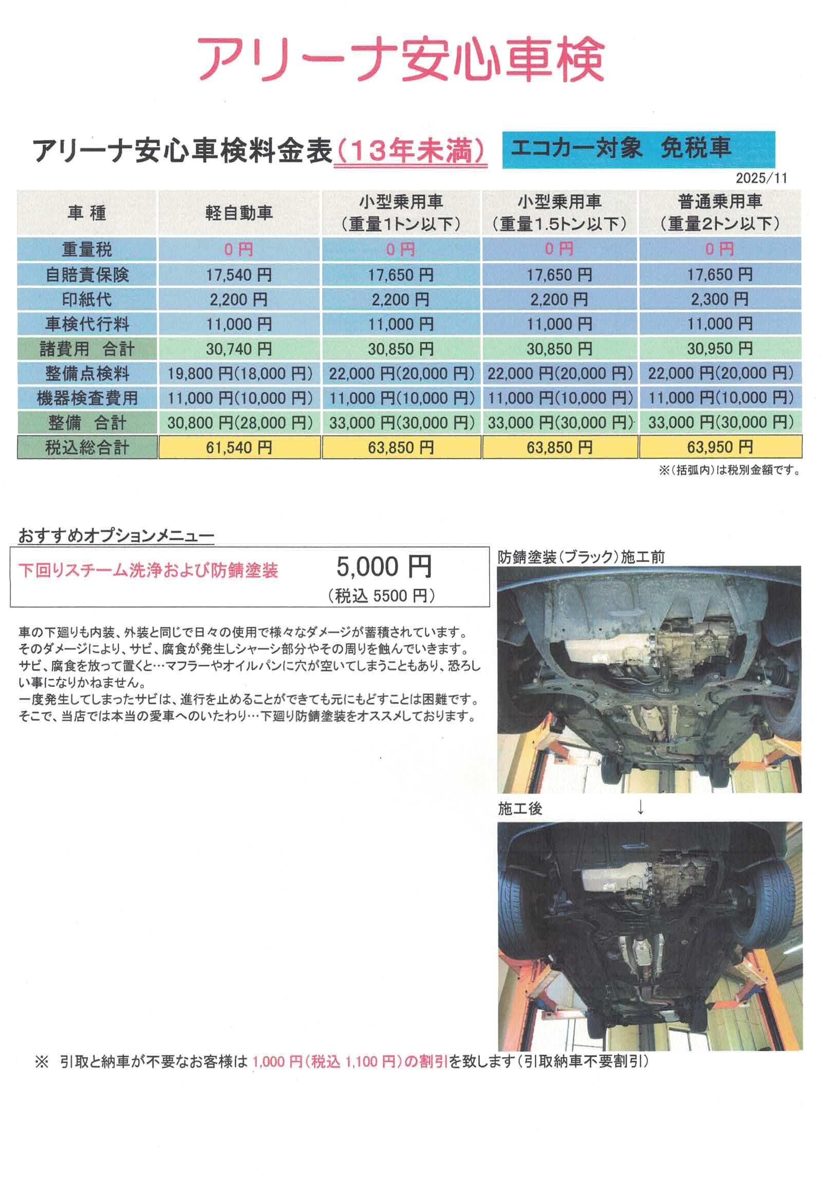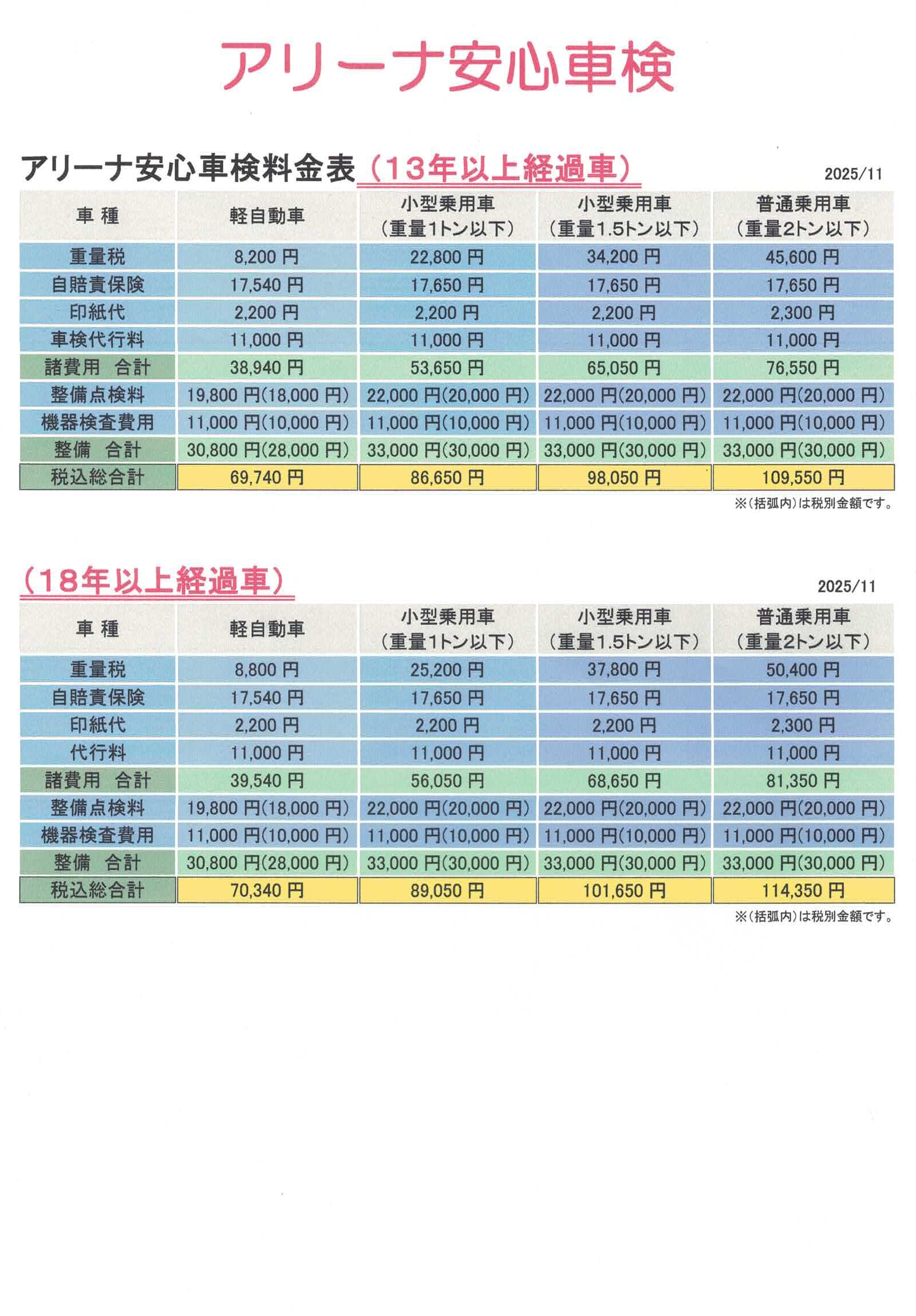 今回は、点検・車検料金のご案内をさせていただきます。