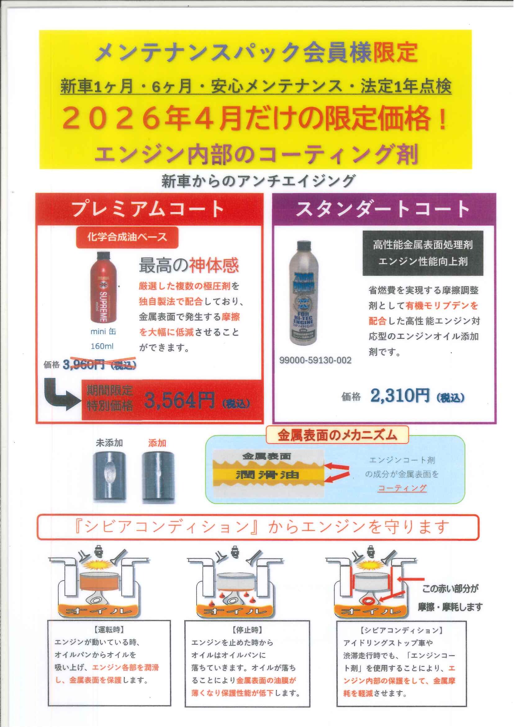 今回は、エンジン内部コーティング剤のご紹介です