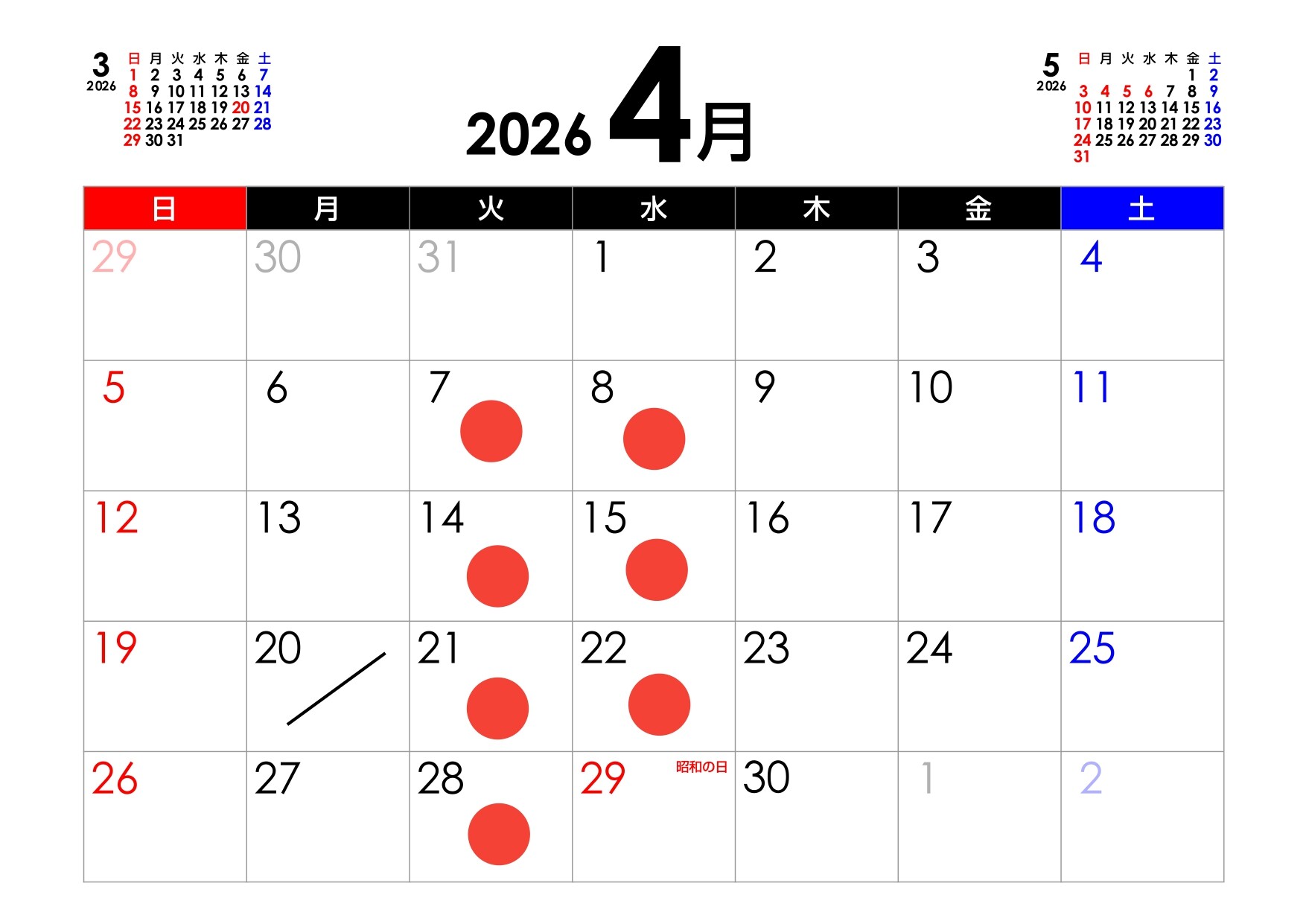 その他 2026.03.23 4月の定休日のご案内です こんにちは! 今週もブログのご閲覧ありがとうございます! 4月の定休日のご案内になります。 ●のついている部分が定休日となります。 また、4/20(月)は午後より社員研修の為、午前中のみの営業となります。 ご了承ください。 よろしくお願いいたします! ではでは!!
